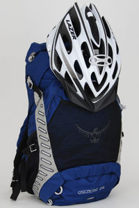 Batoh je zkonstruován z lehké, ale odolné tkaniny 210D Mini-Hex Nylon & Nylon 420HD, která zaručí bezpečnou přepravu nákladu při malé hmotnosti (1100 g). Neobvykle na batohy Ospray je tento vybaven pláštěnkou, která se určitě hodí při náhlém slejváku. Velkým plusem je dle mého také výrazný bederní pás. Díky němu batoh lépe drží na zádech a při větším zatížení nenesou ramena celou váhu. Na Escapistovi samozřejmě nechybí ani pohodlný a rychlý odkládací systém cyklo přilby LidLock™, který je opravdu vychytaný a poslouží například při nákupu nebo obhlídce okolí bez kola. Ocenil jsem také dvě malé kapsy na bederním pásu a jednu na ramením popruhu, třeba na GPS, mobil a klíče.