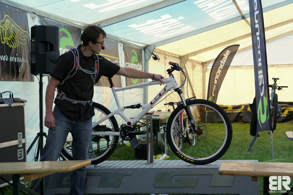 Se slzami v očích, jako malé dítě, kterému vezmete čerstvě rozbalené lízátko, jsem prozatím opřel Jekylla o stan a šel se spořádaně posadit. Ticho v sále, pán úplně vepředu to spustí do mikrofonu. Odpálí to hláškou „nebudu vás zahlcovat spousty nesmyslných grafů, ale pár vám jich ukážu“. Dozvěděl jsem se, že jejich rámy jsou nejlehčí, nejpevnější a nejrychlejší (poznatek č 3. – Kdo nechválí svojí značku, je špatný obchodník).