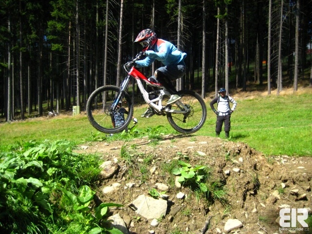 Druhý den ráno jsem se těšila, jak si všechno zopáknu, jaké však bylo moje překvapení, když jsme se vydali trénovat asi metrový drop na trati pod lanovkou! Nikdy jsem si nemyslela, že bych se na kole mohla odlepit od země a hle… Když vám někdo poradí jak na to, tak to jde samo. Odpoledne jsme ještě skákali lavice a musím říct, že po absolvování dvou Simpleride Nikita kempů a po řadě víkendových výletů do bike-parků si po roce v sedle sjezďáku připadám o dost jistější a jízdu si teď vyloženě užívám. Díky celému týmu Simpleride.cz a Nikitě. Za rok opět na viděnou!