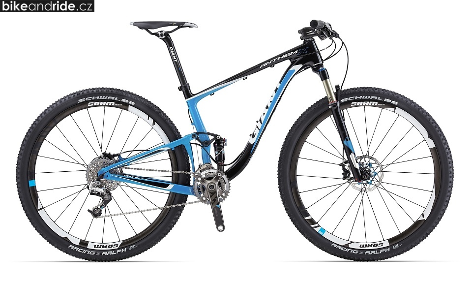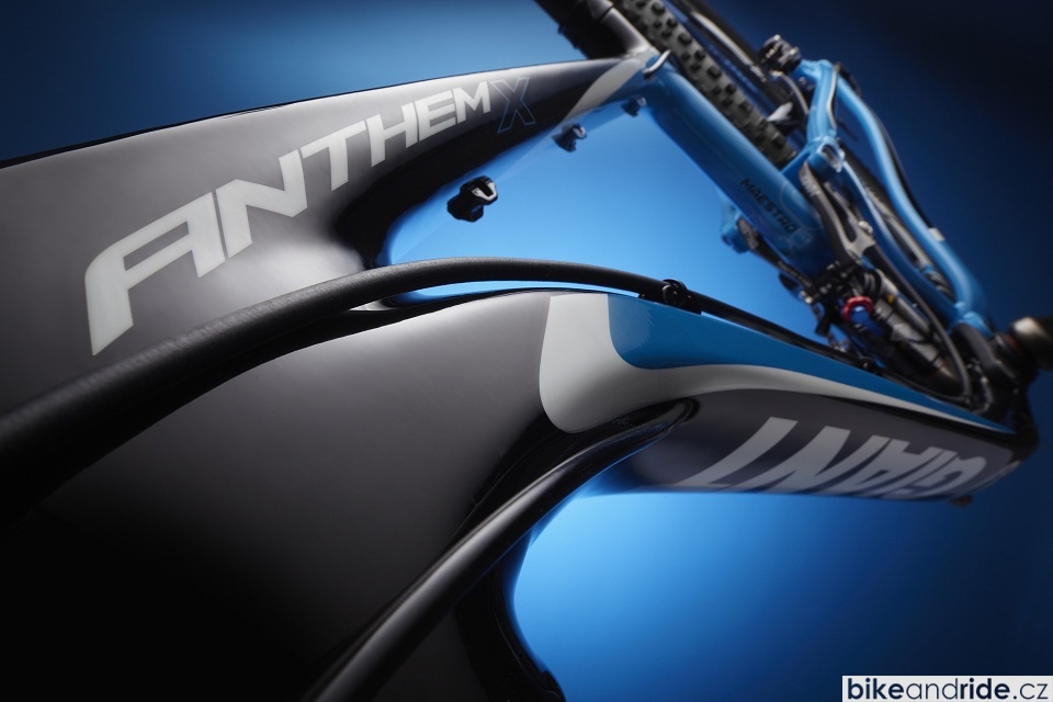 Lehký hlavní rámový trojúhelník z karbonu, tuhá hliníková zadní stavba, osvědčený virtuální systém odpružení Maestro, to jsou hlavní taháky Giantu Anthem X Advanced 29er. První kompozitový celoodpružený model značky s velkými koly vychází z prověřené geometrie svého staršího hliníkového sourozence. Boduje však nižší hmotností (o 185 gramů oproti rámu hliníkovému), nárůstem pohodlí a především zvýšením tuhosti rámu. K tomu nemalým dílem přispívají technologie MegaDrive a PowerCore, které sází na masivní podobu spodní a horní rámové trubky, středové partie a řetězových vzpěr. Tuhost přední části zase obstarává tapered hlavová trubka standardu OverDrive2 (již dříve představená u silničních modelů) vyznačující se kombinací průměrů 1 1/4″ a 1,5″. Karbonový Anthem X 29er bude nabízen ve třech komponentových specifikacích s tím, že hmotnost vrcholného modelu by se měla pohybovat pod hranicí 10 kilogramů.