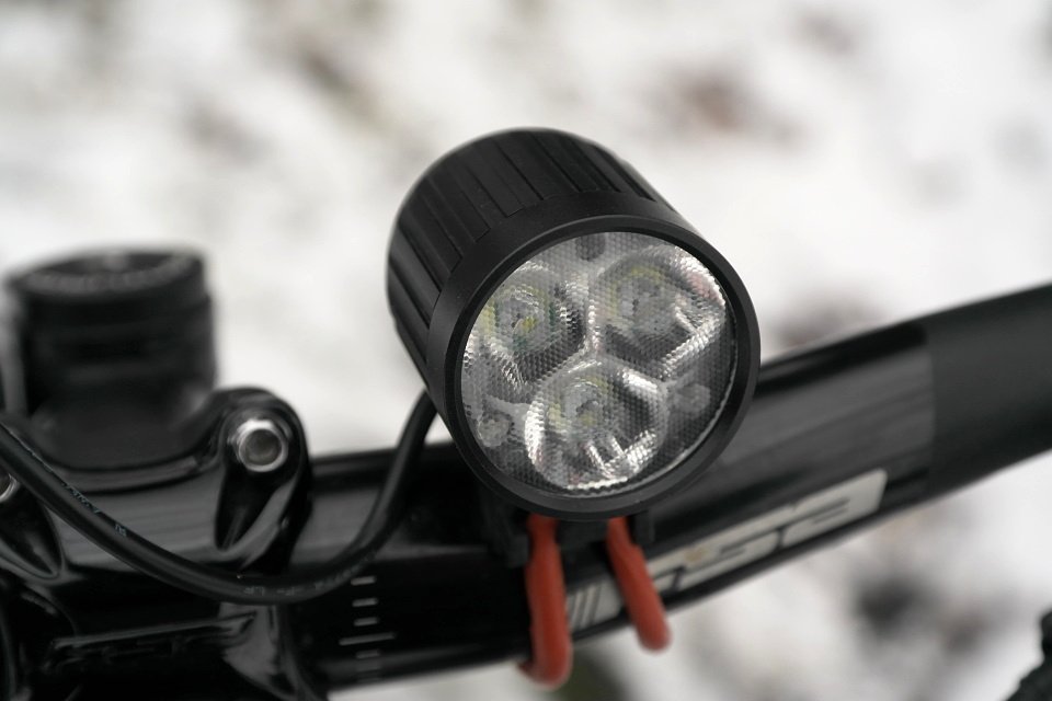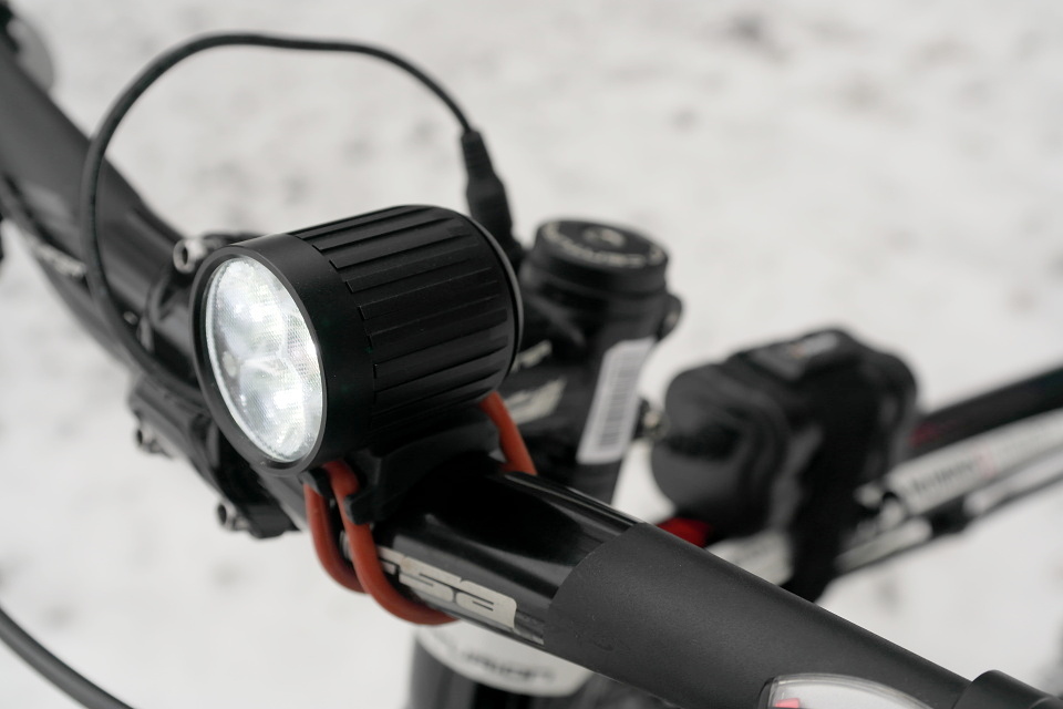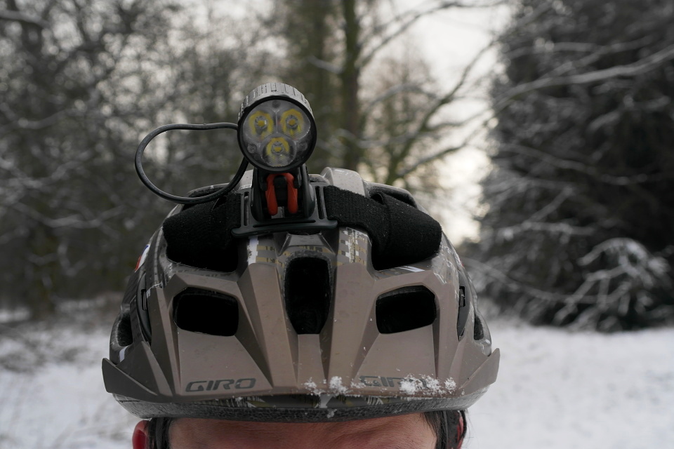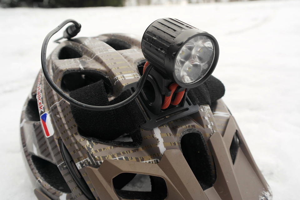 Hodně bude záležet na konkrétní helmě, ale možná bude potřeba pár pokusů, než umotáte občas těžko zkrotitelné pásky se suchým zipem tak, aby byla objímka na středu helmy, a aby vás pásky uvnitř neobtěžovaly. S montáží na řídítka jsem si příliš hlavu nedělal, raději jsem si vše naložil na hlavu. Toužil jsem vyzkoušet jízdu nocí se světlem přímo na čele a řeknu vám, že to má cosi do sebe – svítit tam, kam se díváte. I když se světlem na řídítkách jsem nikdy problémy vlastně neměl. Ideální by asi bylo užít si luxus a svítit z čela i řídítek.