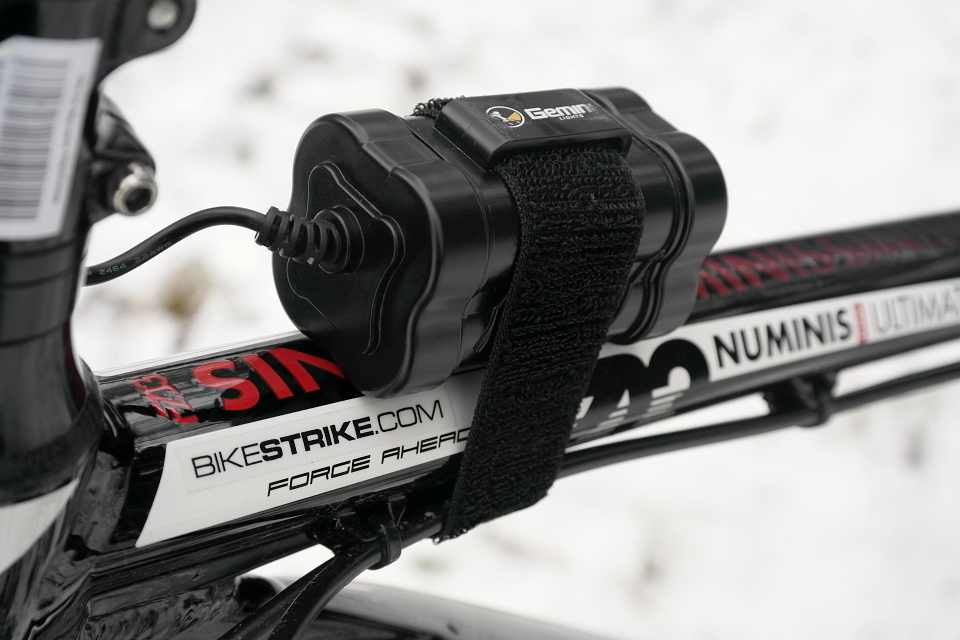 Prořezávat si tedy temným lesem cestu se světlem Gemini Olympia na hlavě není problém. Kdo chce, hodí si Gemini na řídítka a baterii upne na rám. Ale pozor na přílišné skotačení! Takový X-up při půlnočním dirtování by mohl způsobit nejen dočasné oslnění sebe sama, či nočních spolubojovníků, ale také rozpojení nebo poškození kabeláže.