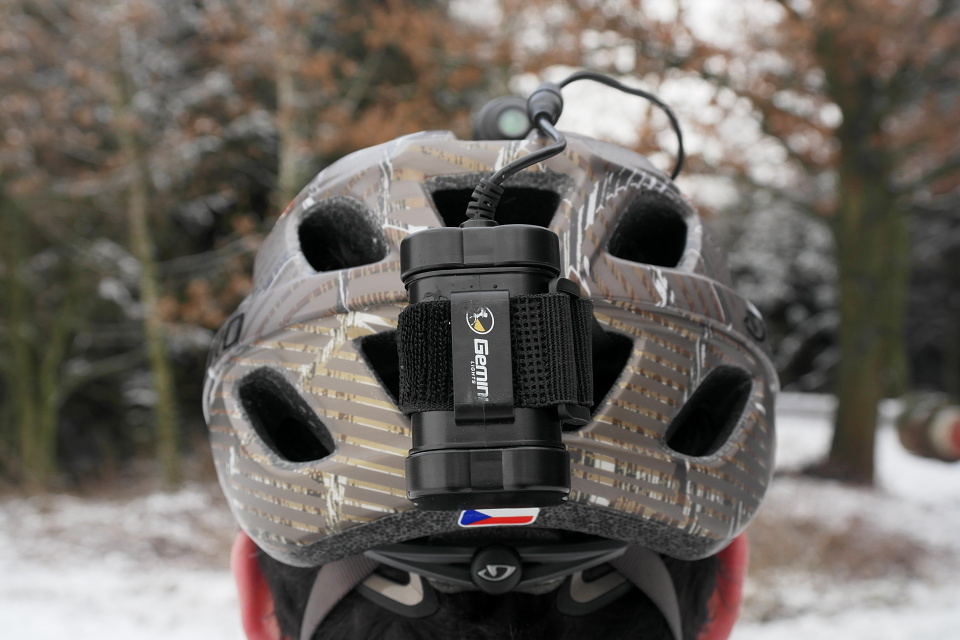 Nevýhodou svícení z helmy, jak ještě každý tuší, je přidaná hmota, kterou si dobrovolně navěsíte na hlavu jako ozdobičky na větve vánočního stromečku. V případě Gemini Olympia s čtyřčlánkovou baterií to dělá něco přes 300 gramů (78 g reflektor + 228 g akummulátor). Výhodou naopak je, že se hmotnost, díky baterii v týlu, hezky rozloží a helma proto netáhne dopředu ani dozadu. Navíc člověk se světlem na čele nemá příliš tendence házet hlavou jako když Metalica hrábne pořádně do strun. Vyšší hmotnost na hlavě tak paradoxně pomáhá stabilizovat helmu i kužel světla.