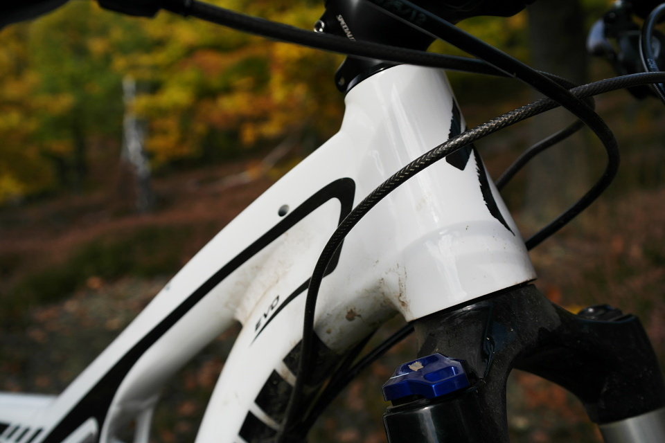 U emkového Camberu mě překvapila i nízká stavba rámu jako takového. Nevzpomínám si, že bych kdy za poslední roky vozil sedlovku na limitu?! Alespoň bylo vždy opětovné hledání výchozí polohy výšky sedla poté, co jsem ji celkem často dával dolů, výrazně snazší a rychlejší, aniž bych na ni musel vytvářet jakékoliv značky, či kontrolní vrypy. Stačilo najít rysku „Minimum Insertion“ a bylo hotovo! Ono když už se to jmenuje Evo a tváří se to drsňácky, pak by tu sakra neměla chybět teleskopická sedlovka!!! Navíc když má Specialized svoje vlastní…