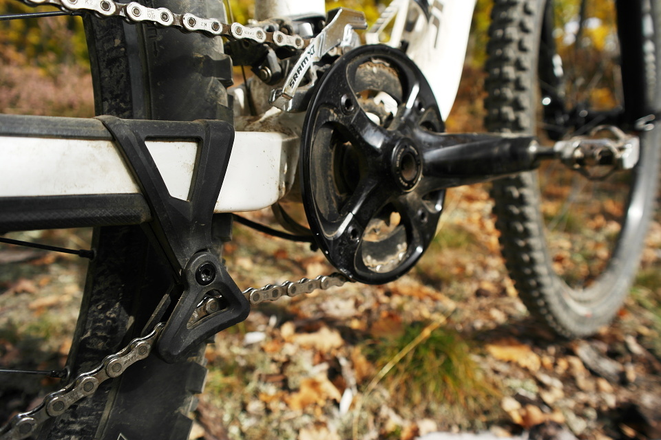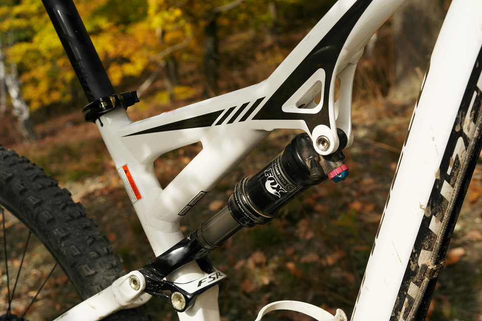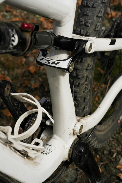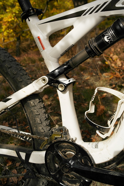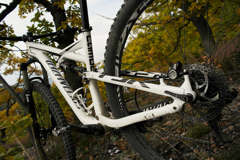 Hlubokou poklonu takřka bez výjimek musím vystřihnout zadní stavbě. Systém FSR je snad nejdéle používaným řešením v MTB (vedle miliónu variací na téma jednoho čepu), které se za dobu své existence nijak zásadně nezměnilo. To je dobře, protože funguje parádně. Součástí tuningu modelu Evo bylo, dle mého soudu, i „odblokování“ tlumiče. Standardní Camber určitě není tak citlivý. Evo ale zobe jedna báseň. Drobný štěrk stejně jako velké balvany. Vzadu jsem doraz nepotkal, respektive necítil, i když se kontrolní kroužek občas podíval až na konec pístnice.