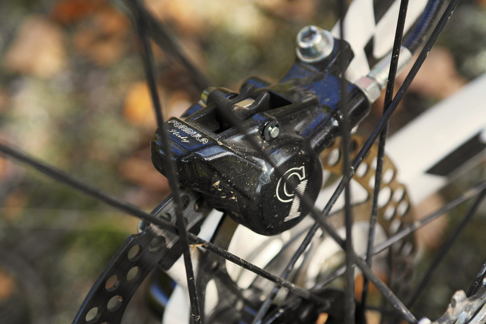 Druhou zastávkou budiž brzdy Formula C1, které ale nemá smysl hodnotit. Proč? Měly problém – brzdily docela dobře, vždy ale až po druhém stisknutí páky. Napoprvé se prsty obvykle propadly až ke gripu. Při vracení kola jsem se ale dozvěděl, že to Formula již řeší, brzdy stahuje a nahradí je novou sérií. Prý nepomohlo ani opakované odvzdušnění. Počkáme a uvidíme, zatím Formula C1 příliš nepřesvědčila.