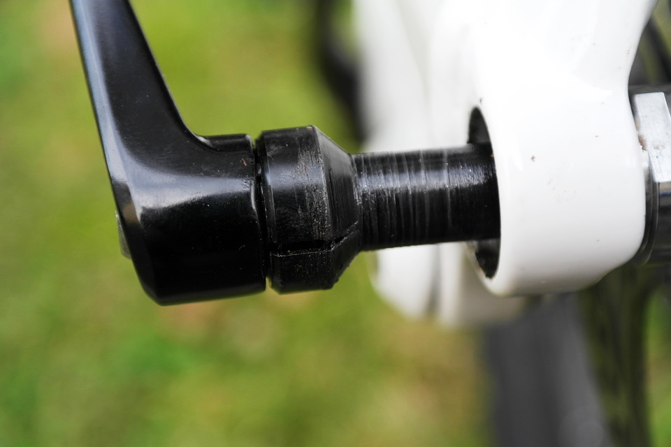 Zajímavý je rovněž bližší pohled na pohyb horního ramene a vidličky navazující na tlumič, která je ke vzpěrám uchycena prostřednictvím tzv. koncentrického čepu. Zde je rozsah pohybu tohoto čepu jasným vysvětlením, proč klasické kluzné pouzdro, které by jinak bylo vlisováno do spodního oka tlumiče, bylo nahrazeno kazetovým kuličkovým ložiskem.