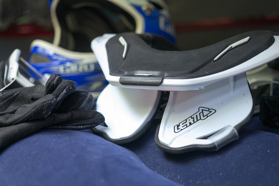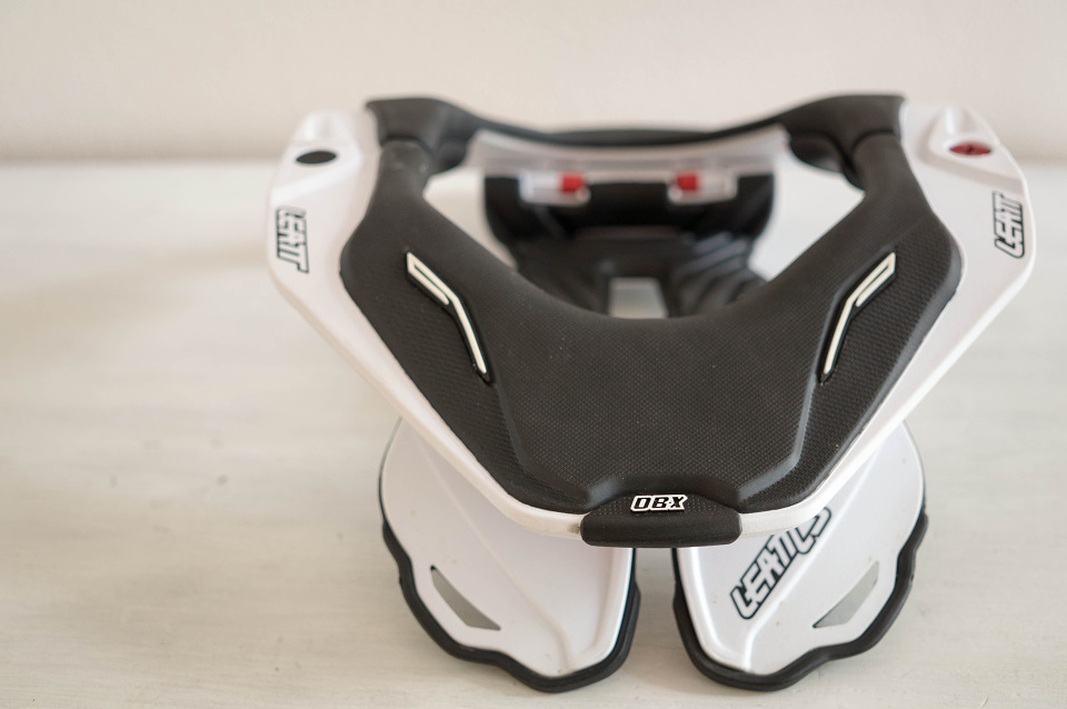 Jak ostatně prohlásil Kuba, který Leatt Brace vozí již slušných pár let, když si na Eurobiku prohlížel novinky: „Ty bláho, to vypadá úplně jinak než můj starý Leatt. Tohle má úplně jinou architekturu! To si musím od Tomanose půjčit a vyzkoušet. A mohli bychom pak udělat takovou tu fotku, jak stojíš na hlavě a drží tě jen helma a Leatt!“