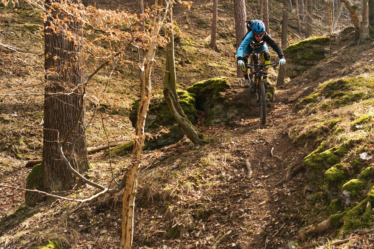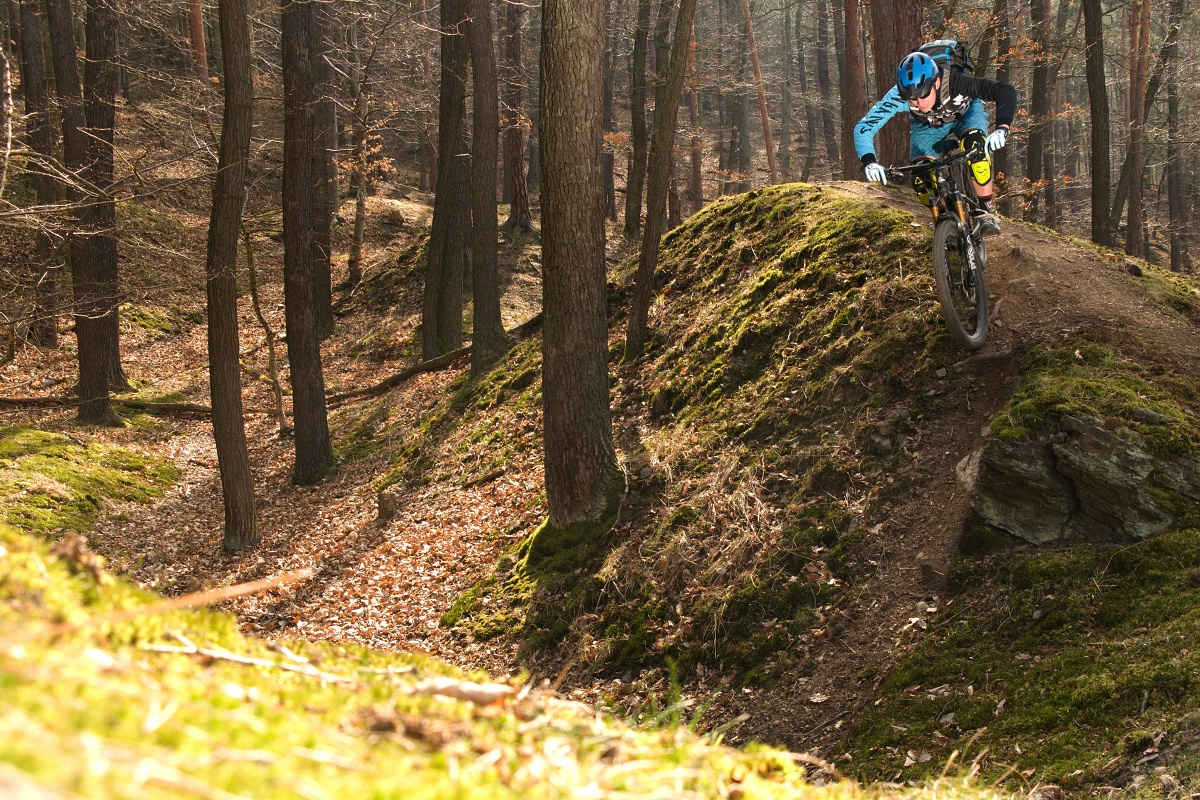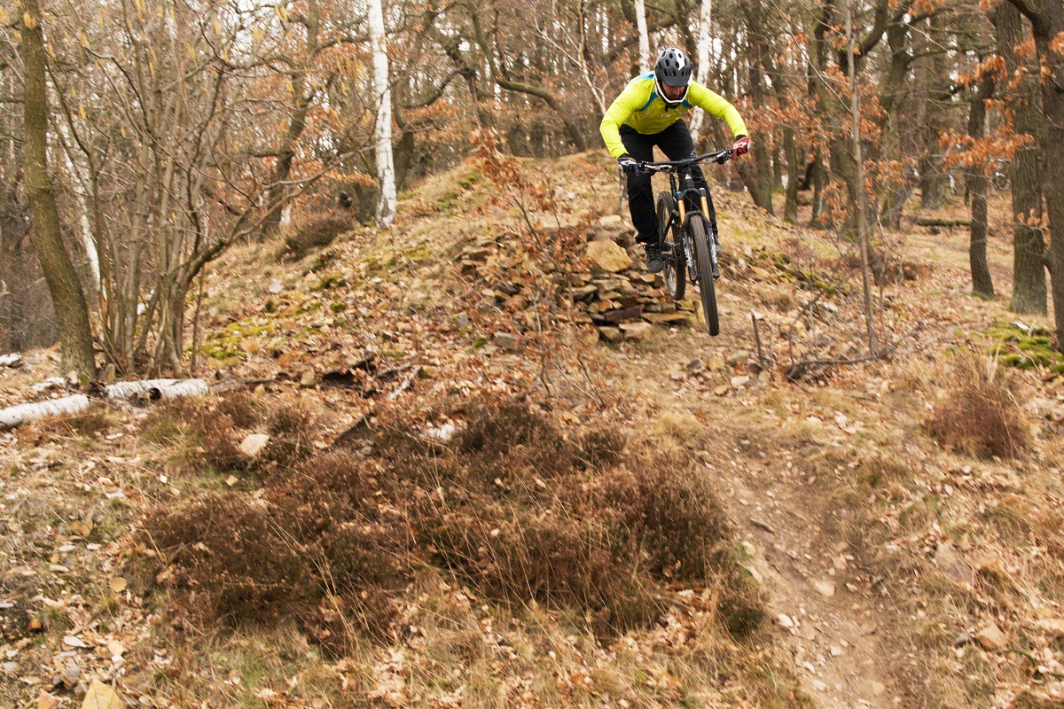 Už po prvním prohoupnutí a projeté zatáčce se nestíhám divit. Ve vteřině sedíte na totálně jiném biku. Tady nebudu vůbec přehánět, když řeknu, že rázem získáváte ultralehký mini-DH bike s jenom nepatrně omezeným zdvihem a bohužel na našem modelu ještě navíc s přesmykačem. Jinak ale není co řešit a hodně technický trail plný volného kamení, traverzů a skoků si užívám tak, jak už dlouho ne. To vše proto, že DH bike jsem do těchto končin dotáhnul naposledy tak deset let zpátky. A to rozhodně neměl parametry dnešních enduro-strojů!