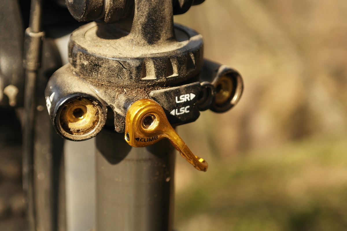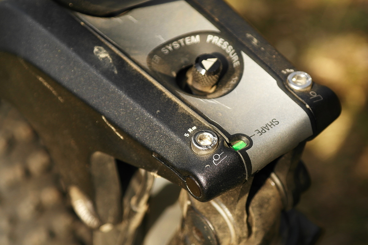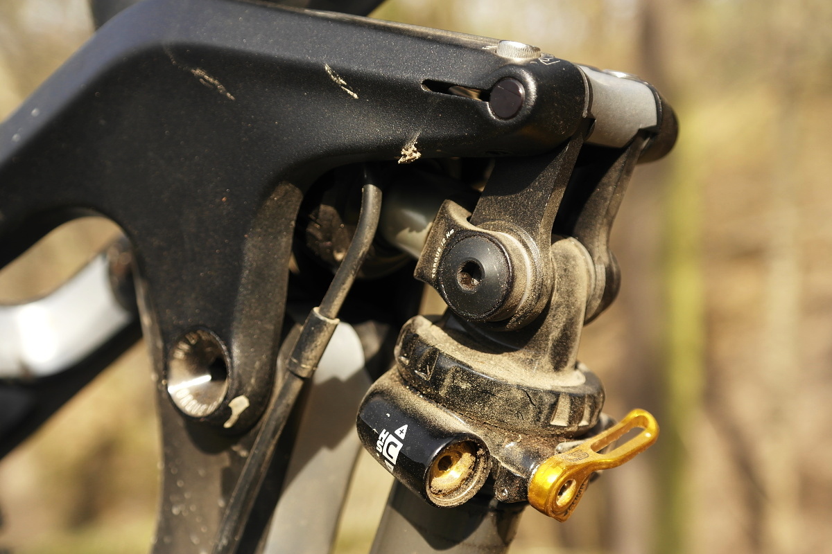 Pod kopcem tahám bike z auta a konečně mám po pár hektických dnech čas si ho pořádně prohlédnout a začít ladit. První dojem je klasicky nadšení z dalšího karbonového biku, který si projedu. To je skoro vždycky svátek a osobně mám tenhle materiál na rámech moc rád. Další věc, kterou se zvědavostí obhlížím, je přepákování a onen často diskutovaný pístek schovaný pod horním ramenem, alias Shape Shifter.