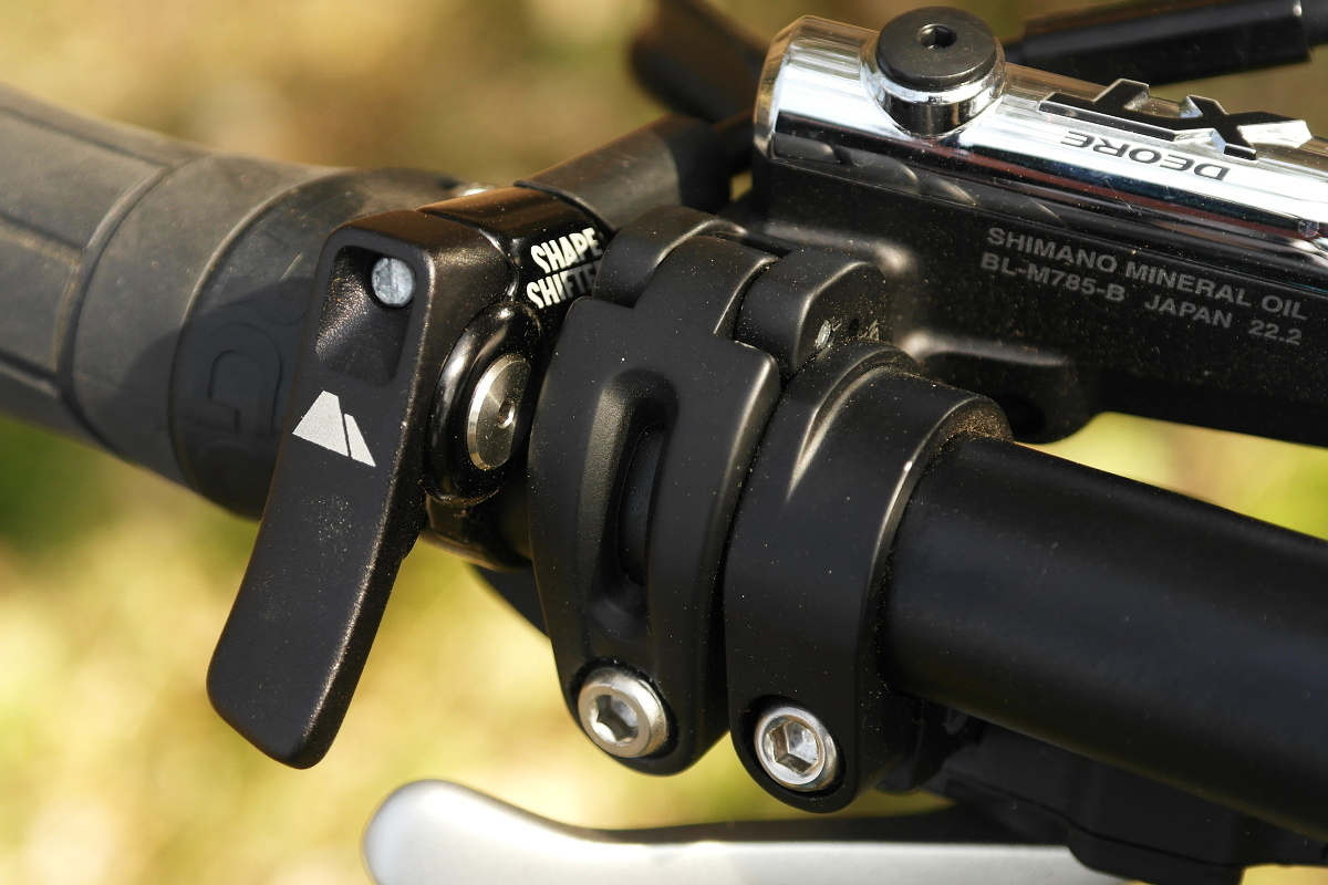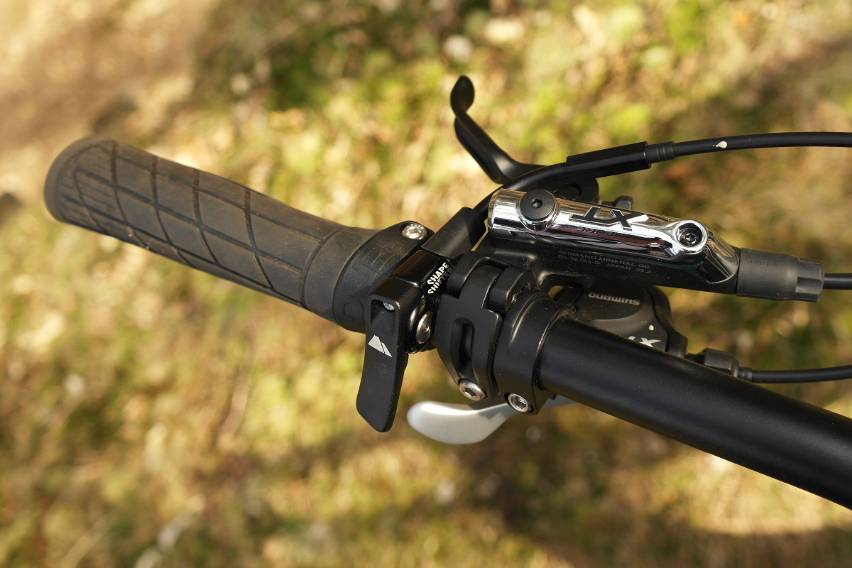 Osobně dávám přednost jednodušším řešením a nevyhledávám na svých kolech komplikovanosti a přebytek páček na řídítkách, takže to, co tu mám před sebou, by pro mě teoreticky mělo představovat ztělesněné a koncentrované zlo! Na řídítkách jedna páčka vedle druhé, do toho gripy ne úplně standardního tvaru (Ergon GE1) a 170 mm vpředu versus 160 mm vzadu, navrch na středním rozměru kol.