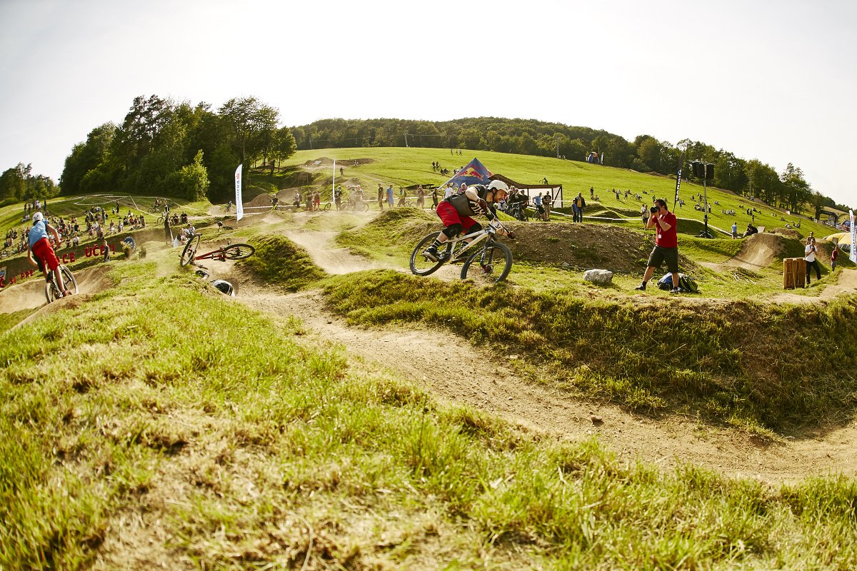Náročnosti trati přidávalo několik úzkých úseků mezi stromy, pár strmých padáků s výhozem do protisvahu a také to, že trať byla krátká – tudíž se každý musel snažit na každém metru být co nejrychlejší. Překvapivě i po sobotní průtrži byla v neděli závodní trasa poměrně suchá a pevná. Pro závodníky určitě bylo k vzteku, když museli pod přímým sluncem čekat na lanovku v dlouhé frontě, tvořené běžnými bikery a návštěvníky bikefestu. Těžko říct, zda dopoledne stihli zajet dostatek tréninkových jízd.