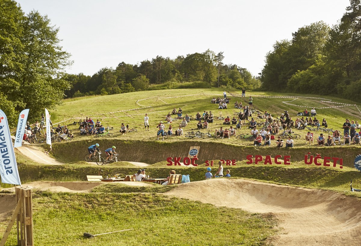 Pumptrack mají v Kálnici opravdu povedený a vedle něho vede i dual pumptrack, takže můžete změřit síly a porovnat schopnosti pumpování s kamarádem či kamarády. Navíc zde byla možnost si dirta půjčit i bez registrace za jednorázový poplatek 13€/hodinu. Areál rovněž nabízel široké možnosti občerstvení, prostor pro kempování a parkování, kdy to vzhledem k velikosti akce a počtu účastníku s dopravou a parkováním vlastně nebylo tak zlé, jen po sobotním dešti bylo parkoviště v trošku horším stavu.