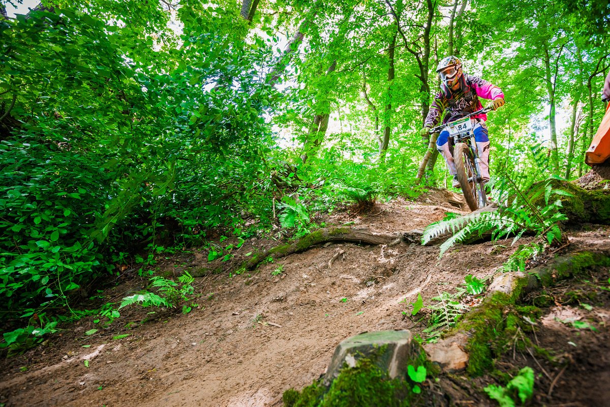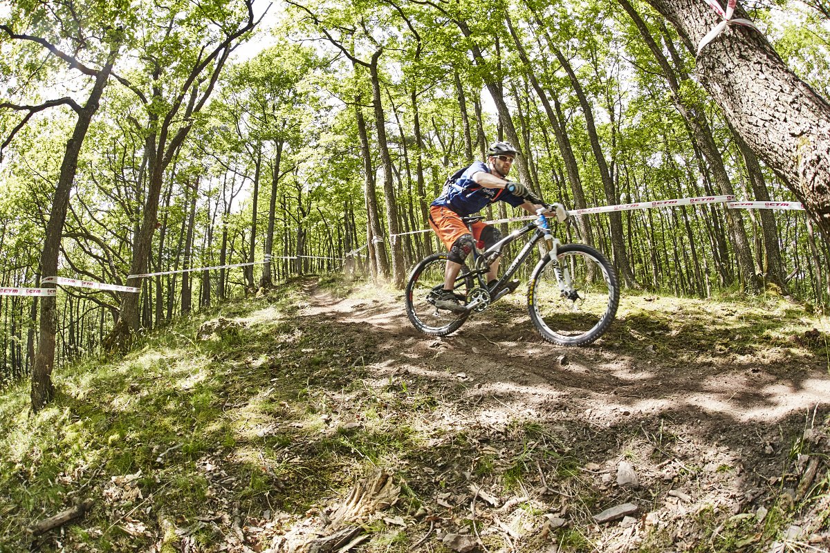 Tratě měřených úseků (RZ) však patřily k těm lehčím. První tři erzety vedly na kopci naproti bikeparku. Zvlněné lesní pěšiny a cesty, které nepřekvapily drsnými úseky, sem tam bylo pár míst s odkloněnými kořeny přes cestu a nějaké to kamení, pár úseků po čerstvé hrabance, slalom mezi stromy… Lehké ale zábavné!