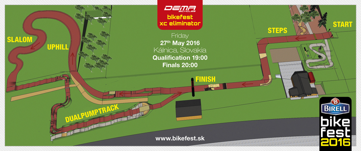| Pátek, 27. 5. 2016 | 13:00 | PUMPTRACK | Tradiční pumpovací závody na velkém pumptracku DEMA bikeparku Kálnice a warm-up před večerním dual pump závodem. Tento rok se změněnými pravidly. |