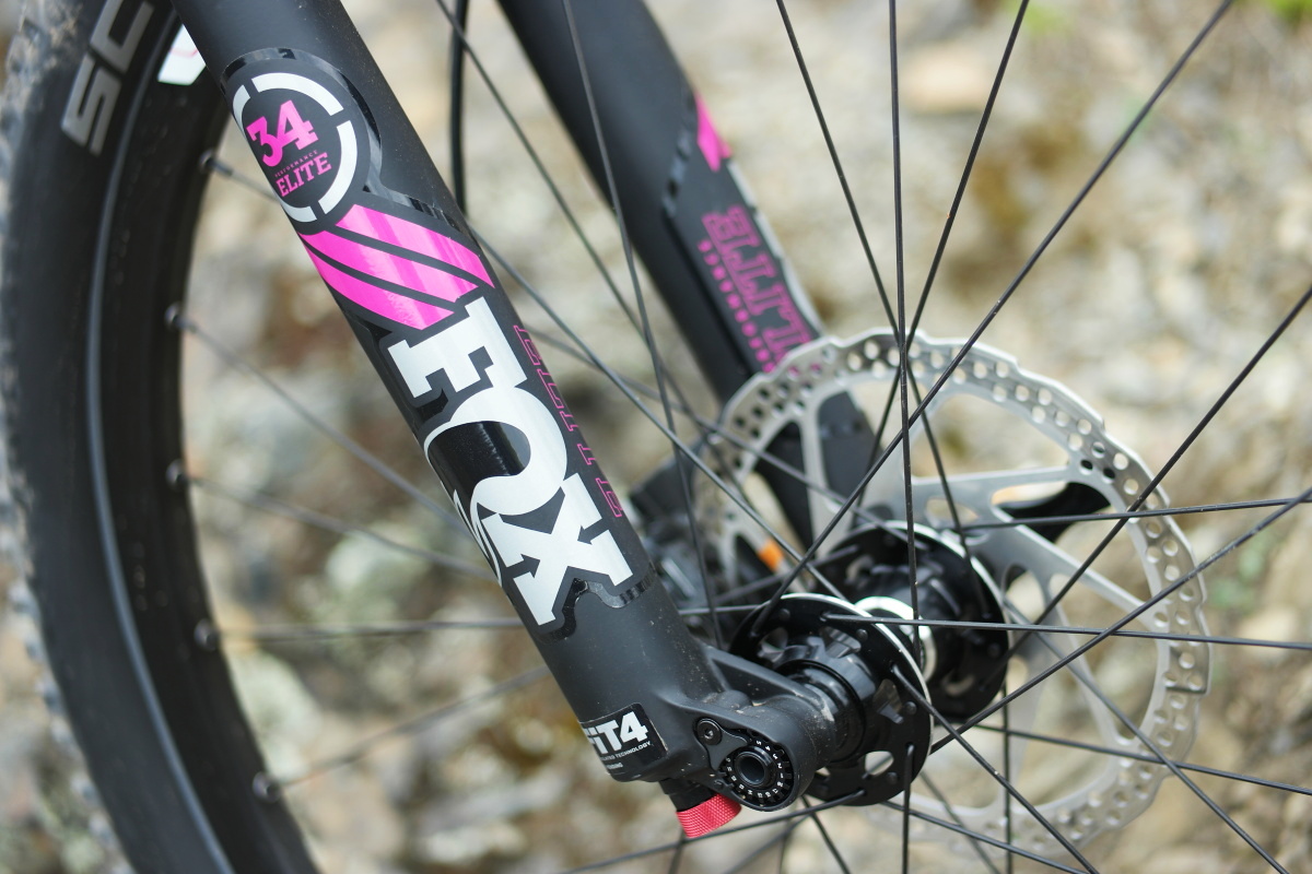 Vidlice Fox 34 je s kolem dokonale barevně sladěná. Zapletená kola Giant jsou nenápadná, o to více práce odvádí!