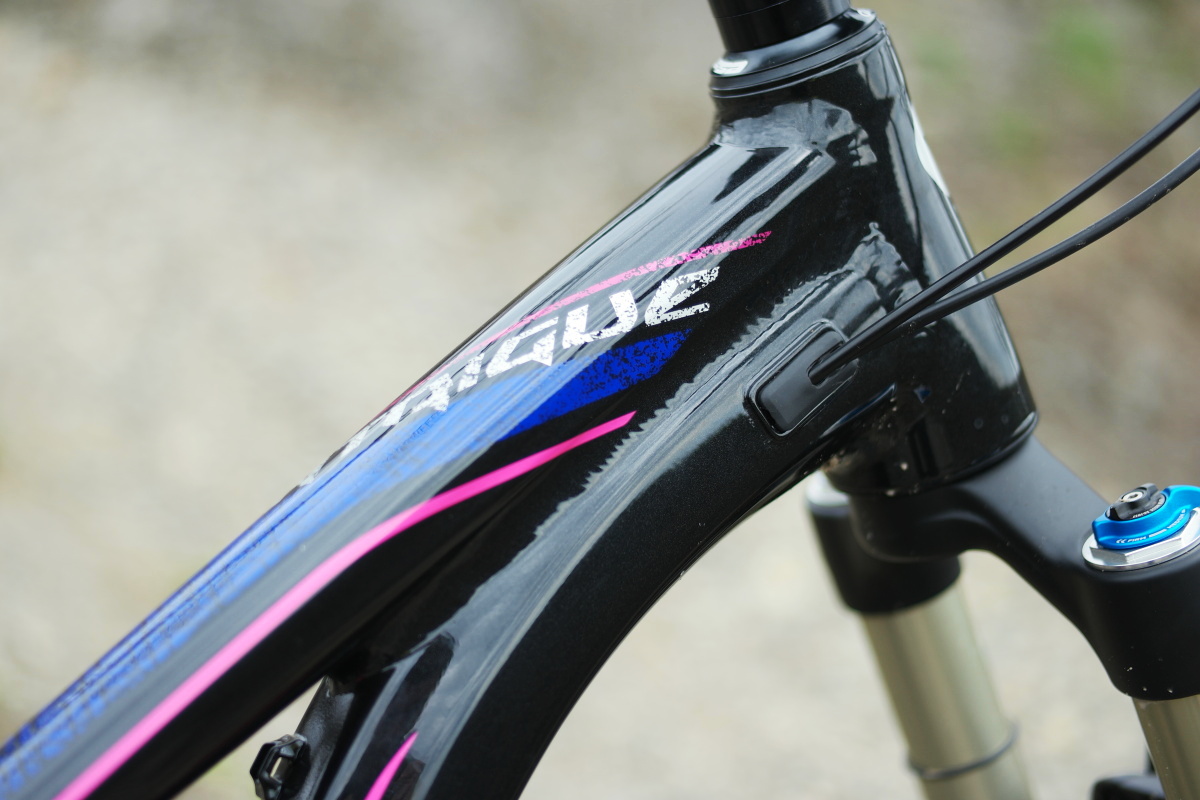 Již při prvním pohledu na katalogovou fotografii zaujme výrazné provaření, tedy podélné spojení horní a spodní trubky v přední části rámu, pokračující od hlavy skoro až do jedné třetiny předního trojúhelníku. Důvod je zřejmý, posílení pevnosti klíčové přední partie při důrazu na sníženou výšku rámu, aby měly dívky a dámy dostatek místa pro práci s těžištěm při boji s náročným terénem.