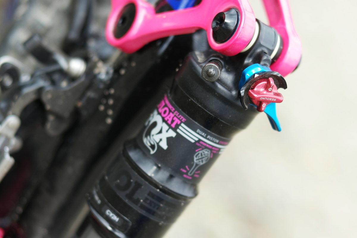 Zprvu jim mohou pomoci vyspělé prvky nastavení, které najdete na tlumiči i na vidlici Fox z řady Performance Elite. Tlumič disponuje větší modrou páčkou, která v základu přepíná módy „Open, Medium a Firm“. Tedy otevřeno, střední útlum a tuhý krok. Pokud byste měly z počátku pocit, že se kolo pod vámi příliš vlní, či přesněji, že je odpružení až příliš aktivní, doporučuji přepnout tlumič do polohy Medium.