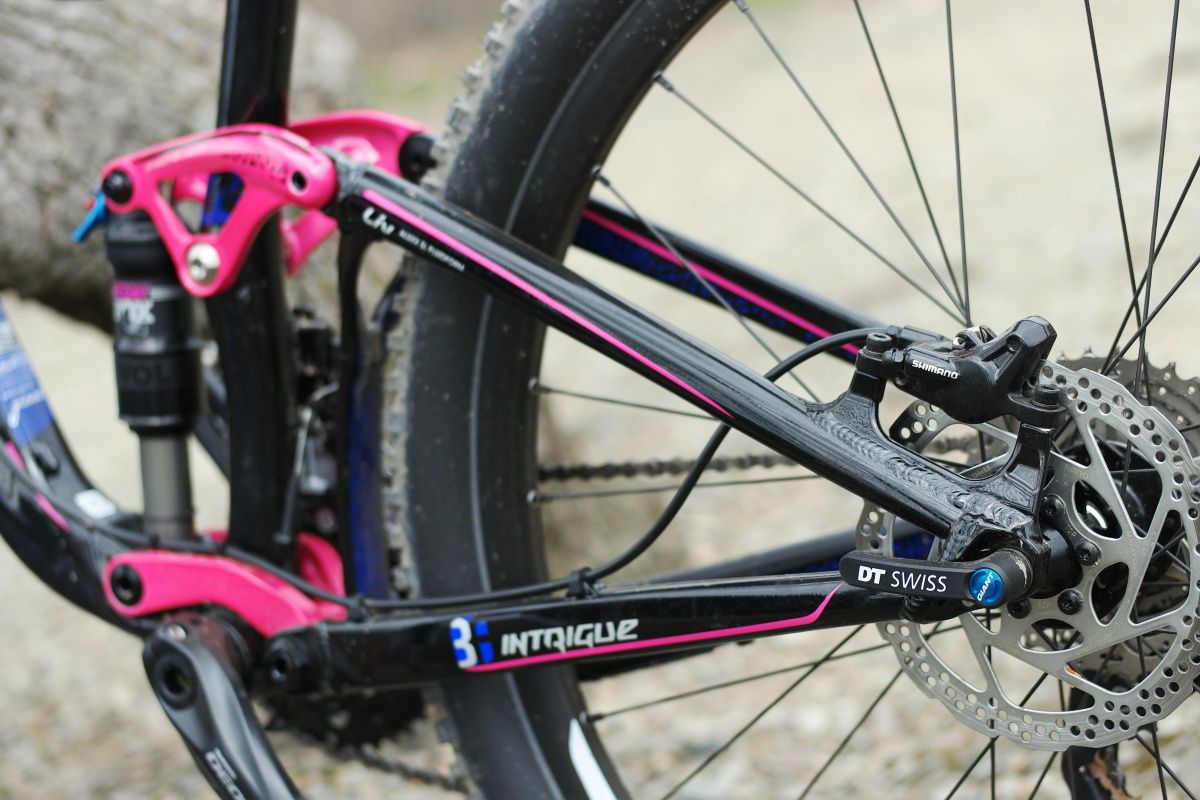 Pojďme se tedy nyní společně podívat na její stroj, s nímž by ráda objela i další enduro podniky na domácí scéně, tedy především v rámci Enduro Serie 2016. Tímto strojem je již zmíněný Liv Intrique 1. Pokud vám to pomůže, lze říci, že je Intrique se svým zdvihem 140 mm nad oběma koly a s trailovou geometrií dámskou obdobou dobře známého stroje Giant Trance, s nímž sdílí řadu konstrukčních prvků, materiálů i technologií.