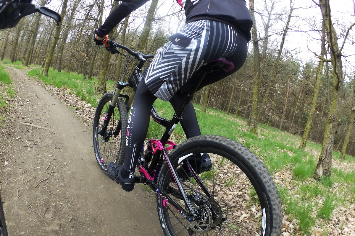Ze začátku jsem měla trochu obavy, vzhledem k vyšší váze kola, než na jaké jsem byla dříve zvyklá, a přemýšlela jsem nad tím, jak se to bude projevovat v delších stoupáních a v prudších výjezdech. Nicméně tyto obavy se nepotvrdily. Kolo jede do kopců svižně, celek je tuhý a dostatečně efektivní. Nad to je zde možnost snadného zkrocení tlumiče a vidlice, což mi výrazně pomáhá v delších výjezdech, kde tedy zbytečně neztrácím energii.
