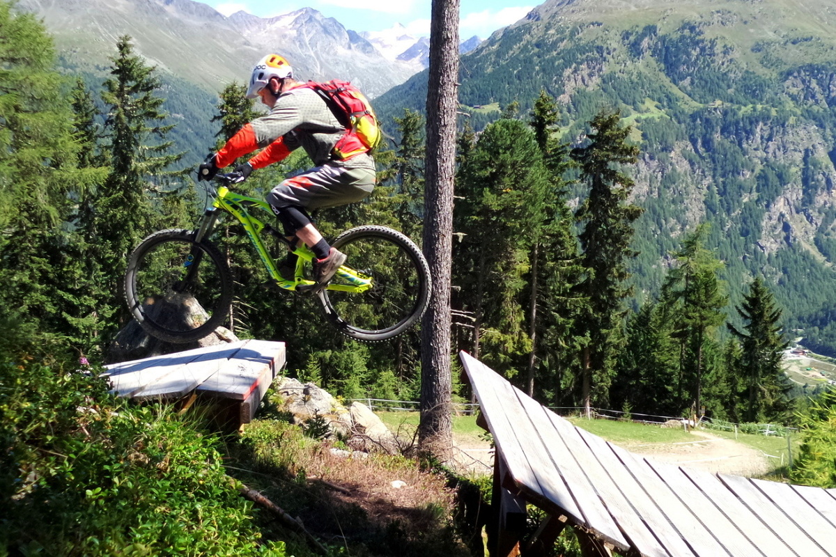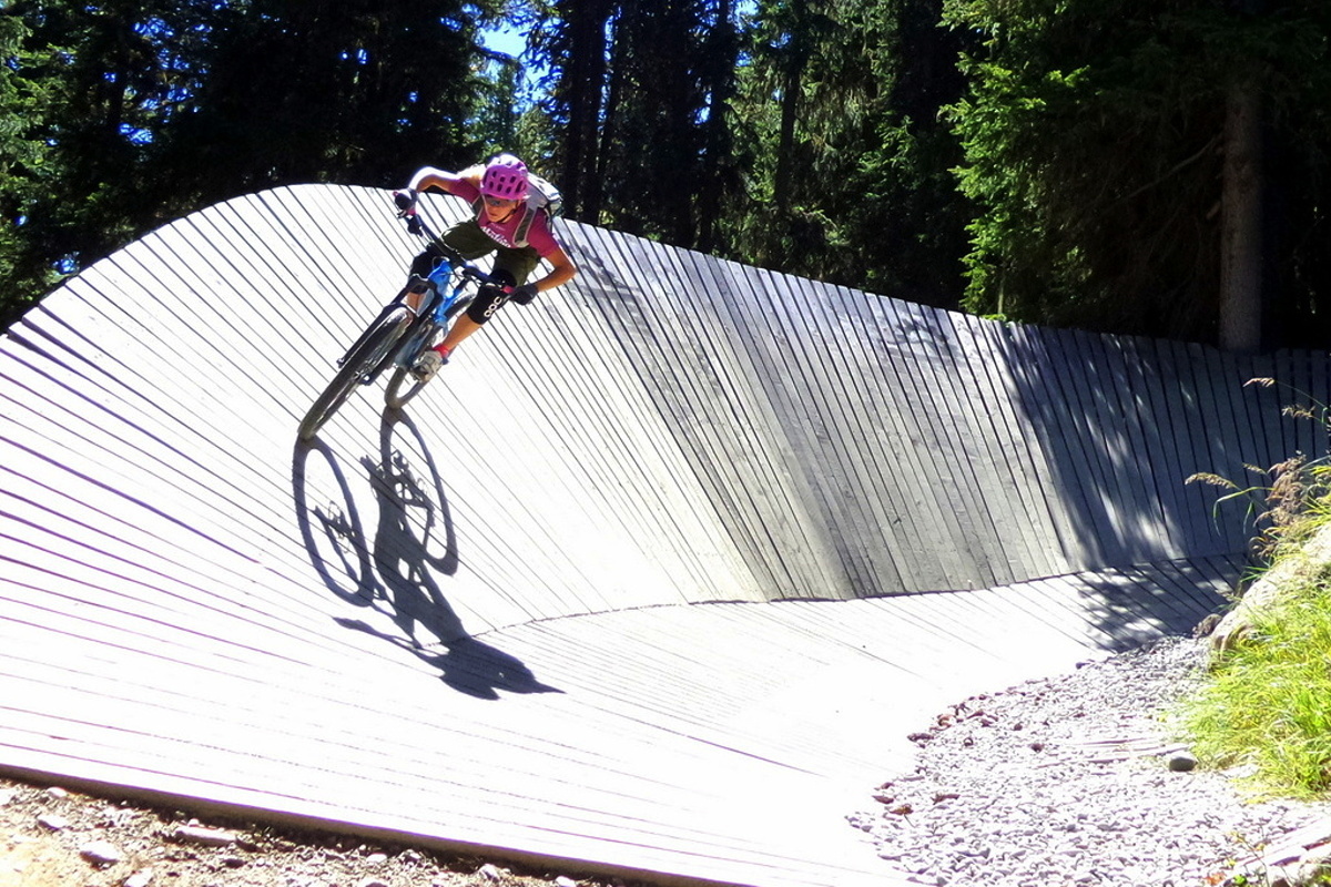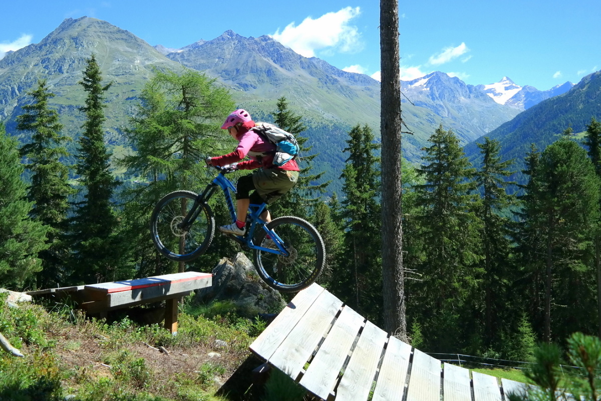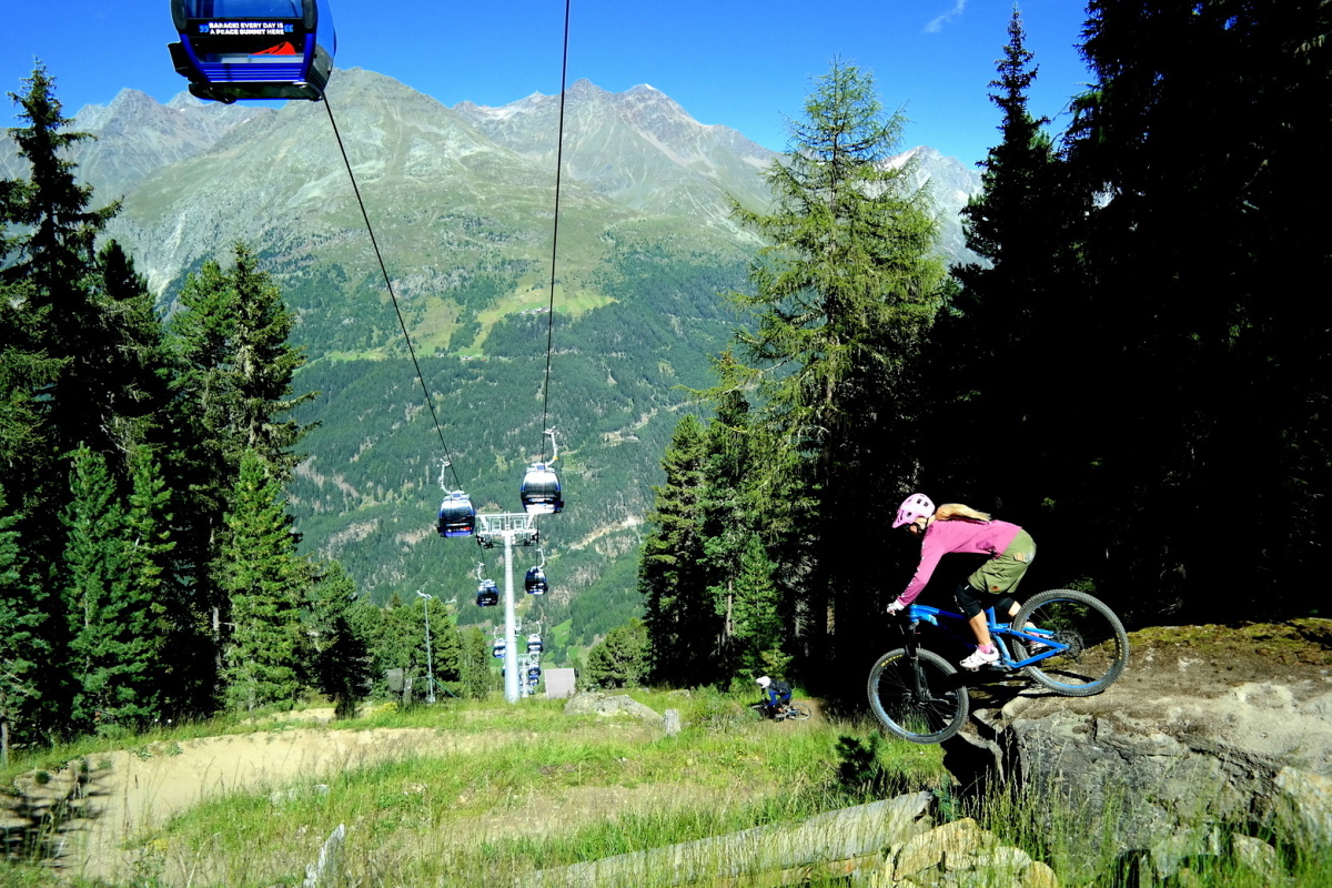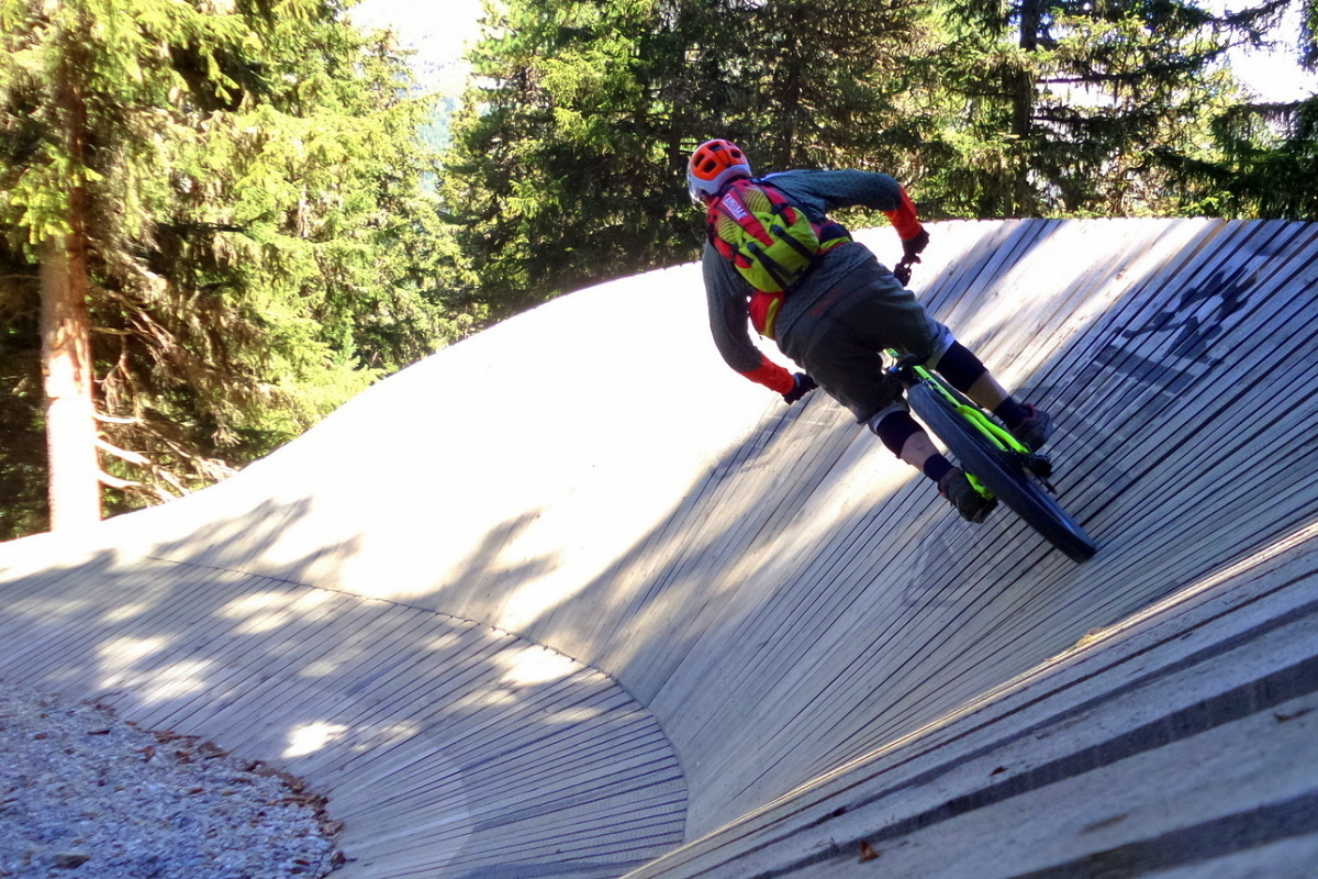Traily v Söldenu vás ve většině případů dovedou k nástupní stanici kabinkové lanovky, kde najdete i velmi pestrý pumptrack – nebo spíš tři pumptracky v jednom! Umělý, dřevěný, ale také uplácaný z hlíny, kdy na všech běžně trénují děti i dospělí.