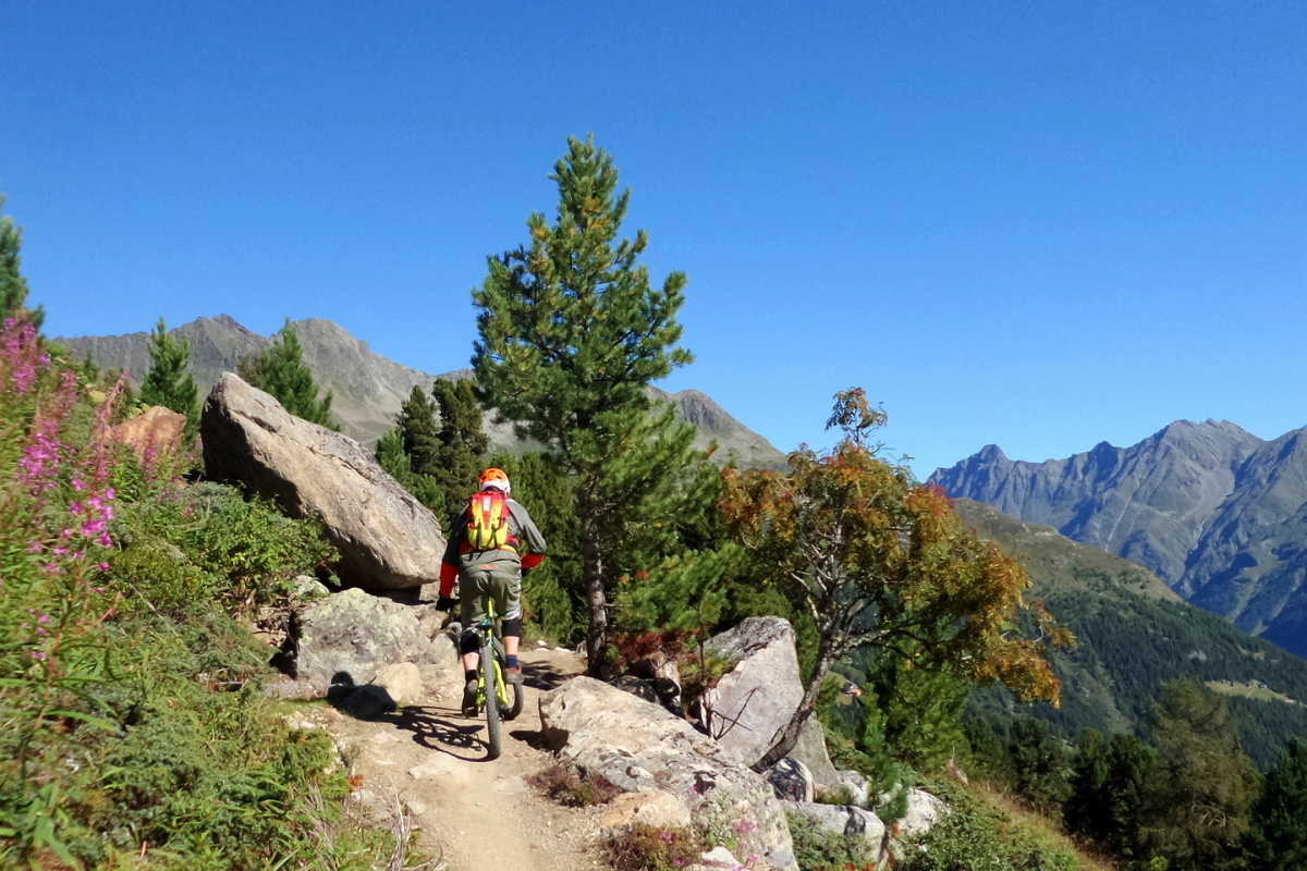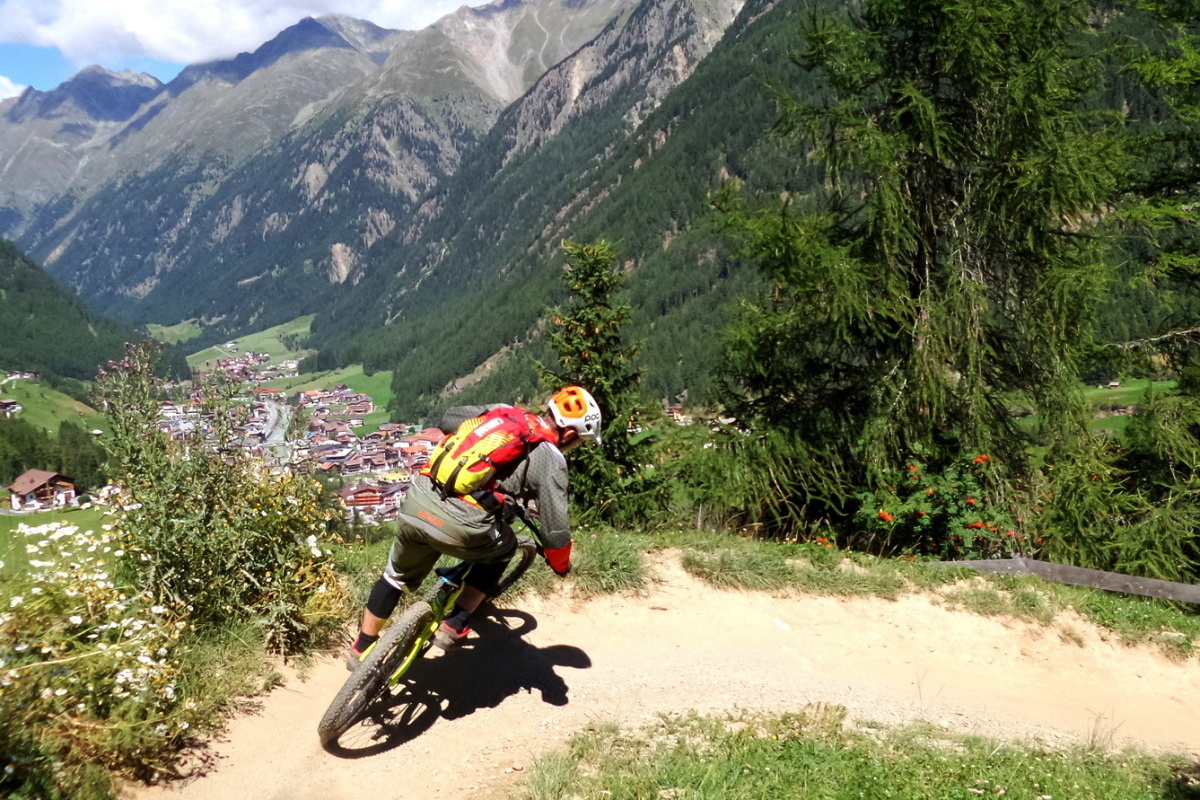 V Söldenu zatím ještě nejsou hotové všechny aktuálně plánované traily, zatím se můžete svézt na čtyřech, ale i to pro začátek bohatě stačí. Na všechny vás vyveze rychlá kabinková lanovka a po dlouhé době se poměr obrátil – nahoru jedete pár minut, dolů pak klidně tři čtvrtě hodiny!
