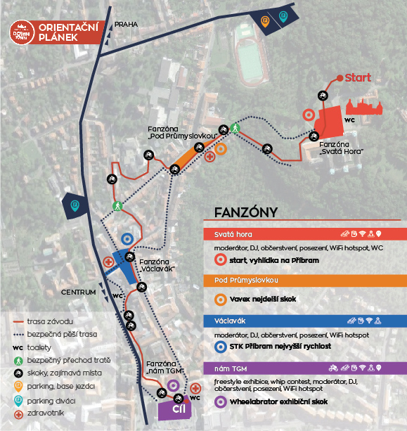 - Stánky s občerstvením jsou naznačeny v mapce – na náměstí T.G.M., na Václavském náměstí a na Svaté Hoře.
