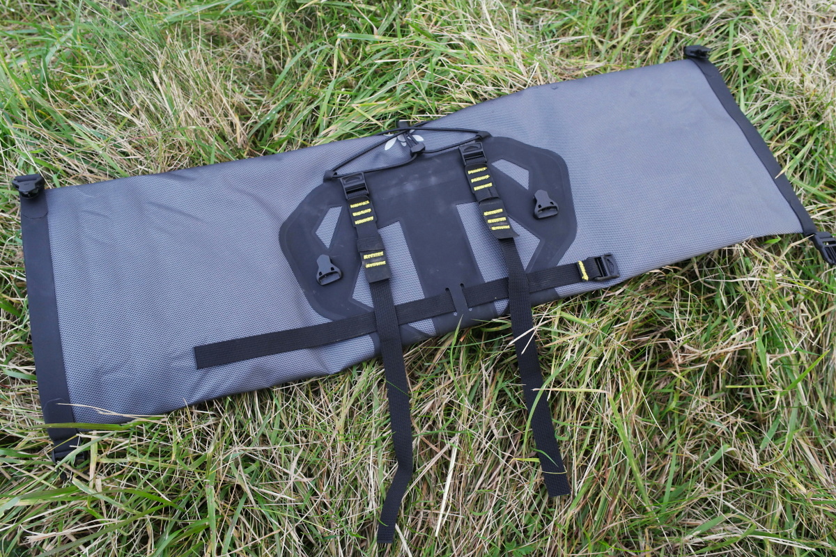 Zavírání velké podsedlové brašny je rovněž řešeno rolovacím systémem pro zajištění proti vniknutí vody a pro snadnou objemovou adaptaci. Rozdílem zde je, že se přezky na koncích nezacvaknou do sebe, ale natáhnou se směrem dopředu a spojí se zde připravenými pásky. Brašna je pak vždy stabilizovaná a zpevněná.