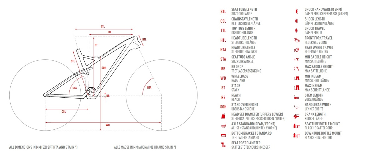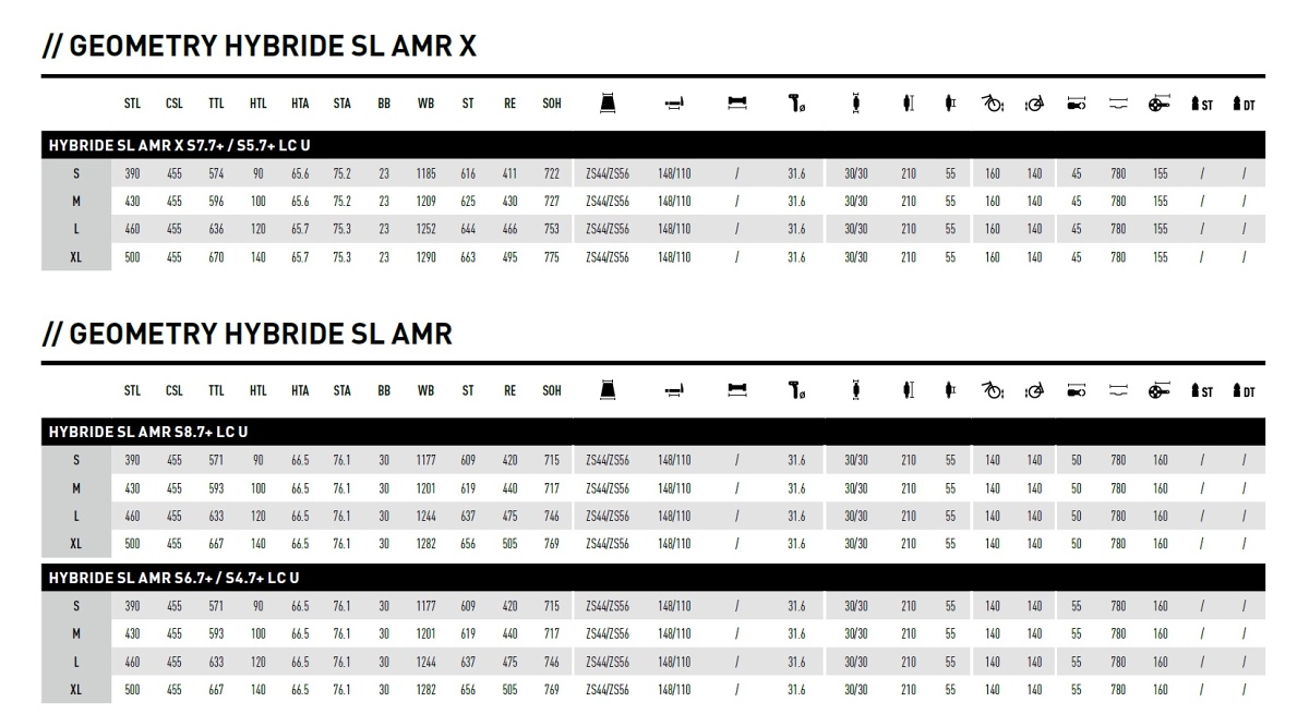 Jak se ale zjistilo při vývoji řad SLAMR A SLAMR X, tak úprava geometrie sama o sobě nestačí (tabulku geometrie najdete níže). Proto se šlo dál. Stejně jako u Lectoru HybRide i zde u strojů SLAMR A SLAMR X byla zvolena motokrosová koncepce rozdílně velkých kol. Vepředu 29“ (SLAMR X vepředu vozí pláště Maxxis WT 2,5“, SLAMR pak Maxxis WT 2,4“), vzadu se naopak točí balón v rozměru 27,5×2,8“.