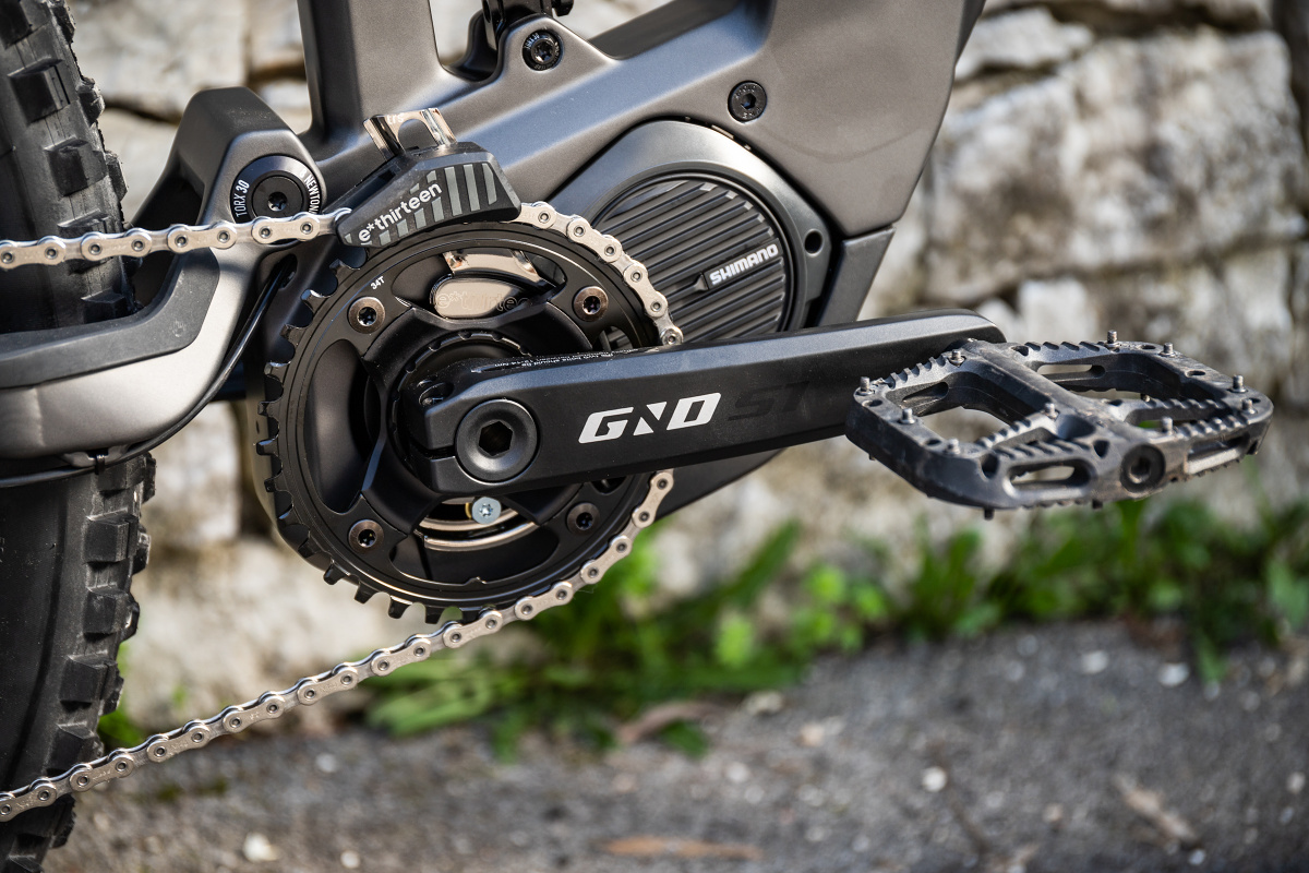 Další velice zajímavou specialitou je radikální zkrácení klik, kdy se u modelové řady SLAMR X šlo až „na dřeň“ a byly použity kliky s délkou 155 mm! U méně vyhrocené řady SLAMR HybRide je to „jen“ 160 mm. Důvod může být opět dost zřejmý. Když jedete do kopce a užíváte si technický trail, nechcete narážet klikami a pedály do kamenů a jiných překážek. Chcete jen točit nohami a bavit se!