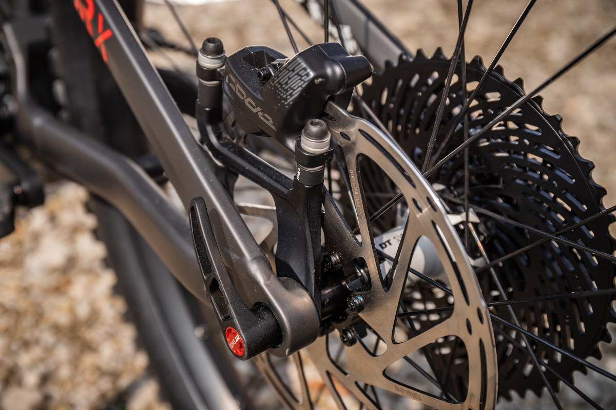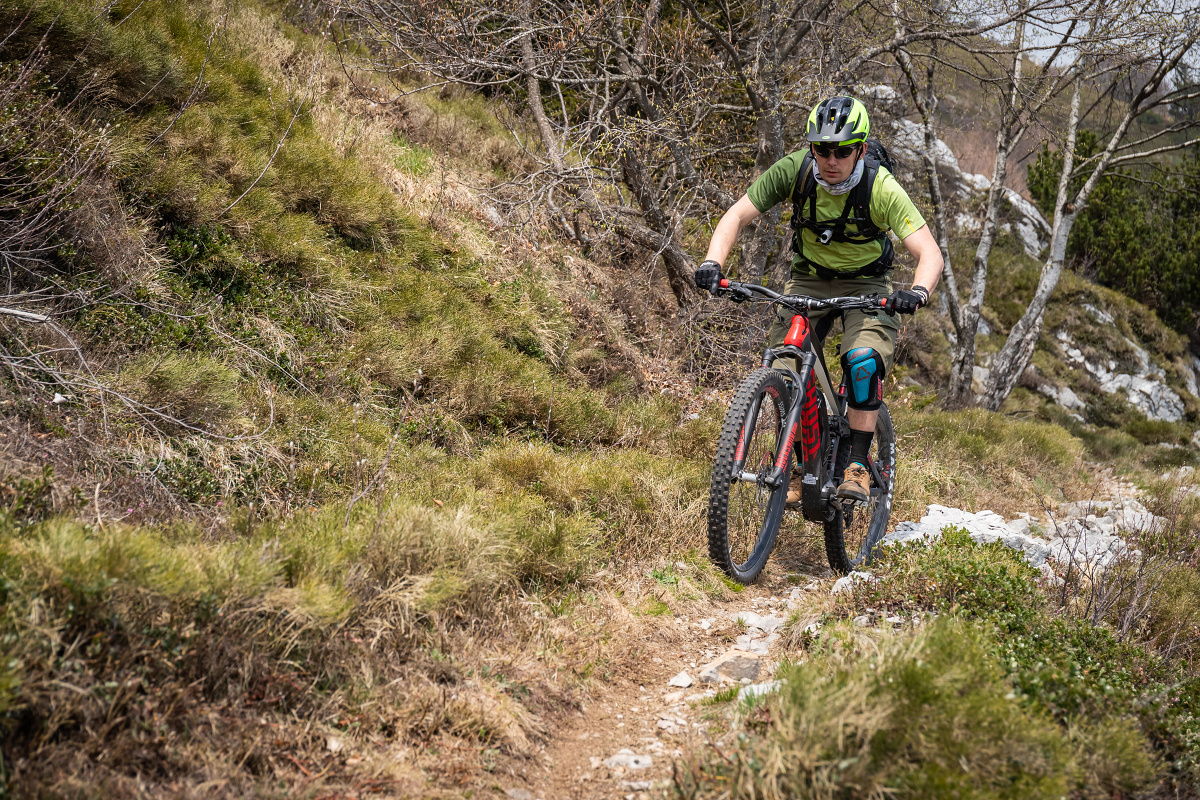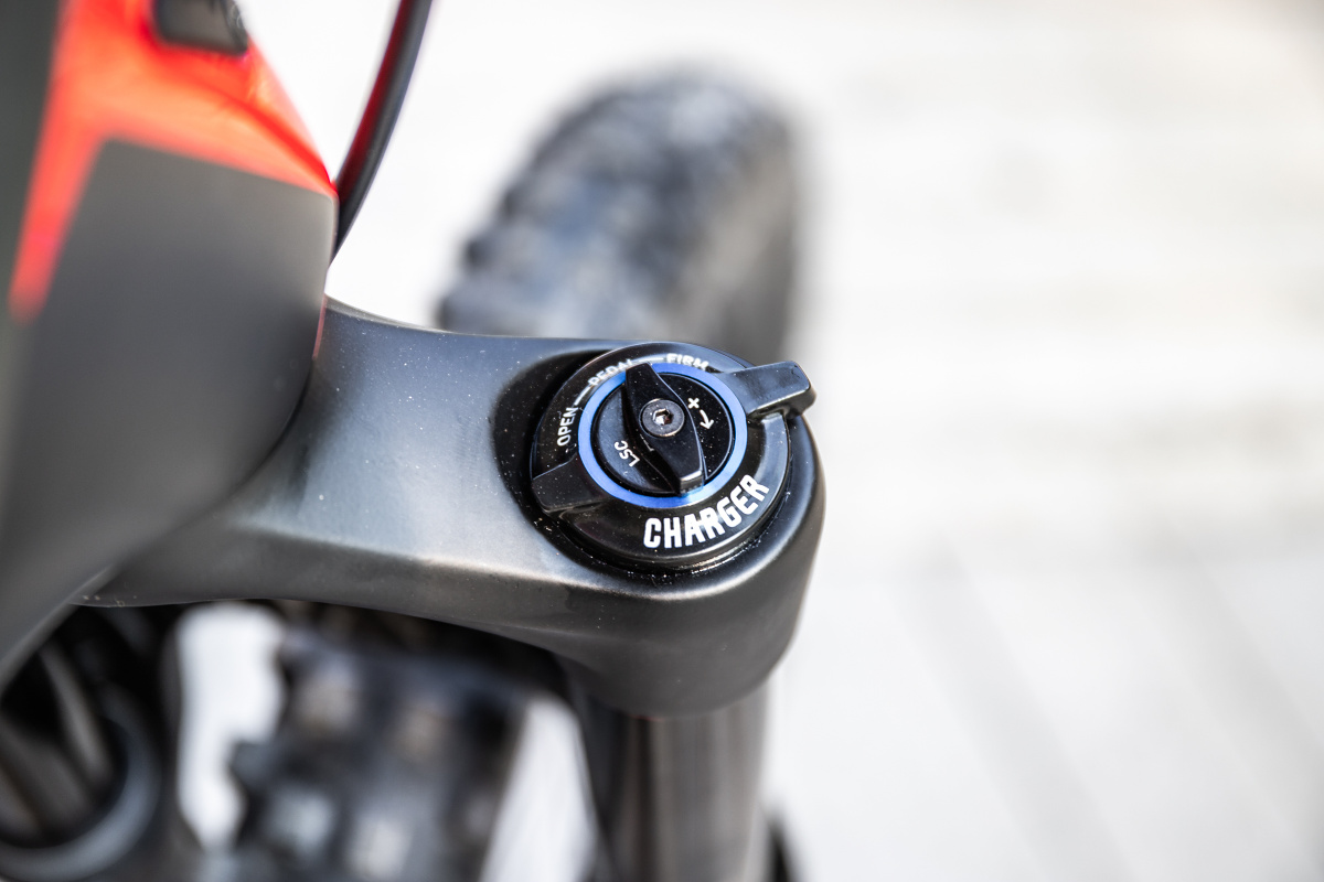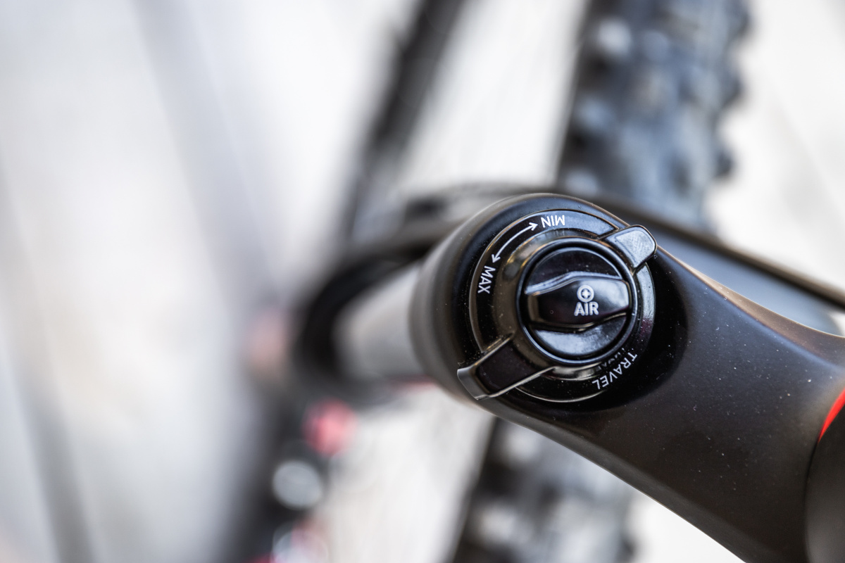 Vepředu je to ale jinak. Tam se Ghost drží vzduchu, co je ale zajímavější, tak tato německo-česká značka vrací zpět do hry systémy pro úpravu zdvihu z pozice jezdce. Aktuálně zde figurují vidlice RockShox Lyrik a Yari ve verzi Dual Position Air, což platí pro řadu SLAMR X, která vepředu koketuje se zdvihem 160 mm. Tento základní zdvih lze přitom snížit snadným otočením kolečka na 130 mm. Důvod je jasný – upravit geometrii pro boj s „extrémními“ výjezdy snížením přední části kola. A že se to místy hodí, sakra hodí! Jak jsem si sám opakovaně ověřil v okolí Gardy a Ledra.