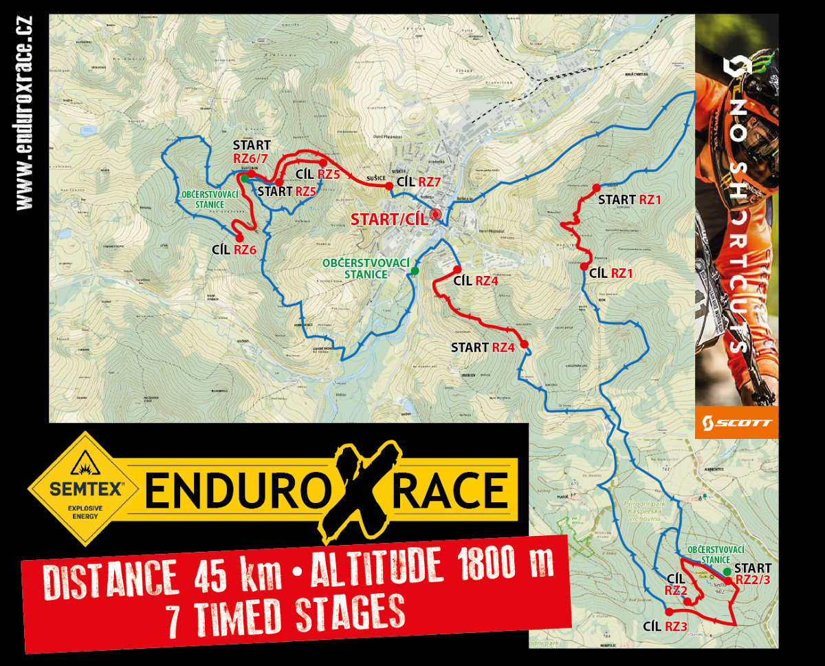 Pro letošní rok si organizátoři nachytali hned několik změn, kdy tou hlavní je rozšíření závodu na 7 měřených úseků, tedy sedm RZ (erzet)! Na závodníky, včetně redakční výpravy, bude dohromady čekat trať dlouhá 45 km s převýšením 1800 m!!! Kdo tedy má tu možnost honem ještě do Finale, jezdit, dupat, trénovat a hlavně nebrat žádný Shuttle!