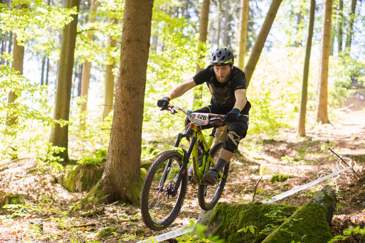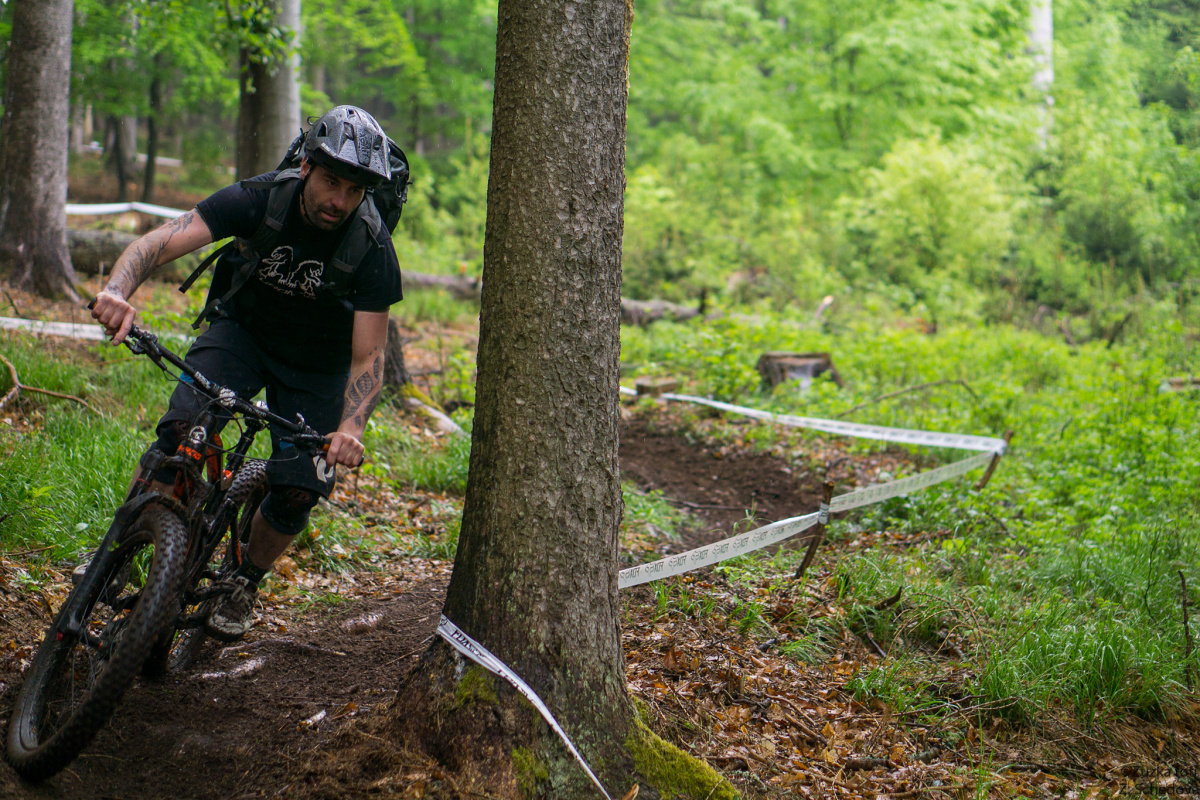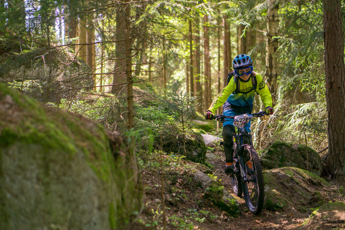 3… 2… 1… Spouštím se do lesa, protlumuji drop a kličkuji mezi stromy. Tuto eRZetu bych tentokrát přirovnal k sobotní dvojce. Pracovní název „Hrabanková hitparáda“. Díky slunečnému počasí je to hrabanková hitparáda zcela ideální konzistence – ani mokrá, ani přeschlá, zkrátka tak akorát. Kde je to možné, snažím se šlapat a nabrat nějakou rychlost navíc.