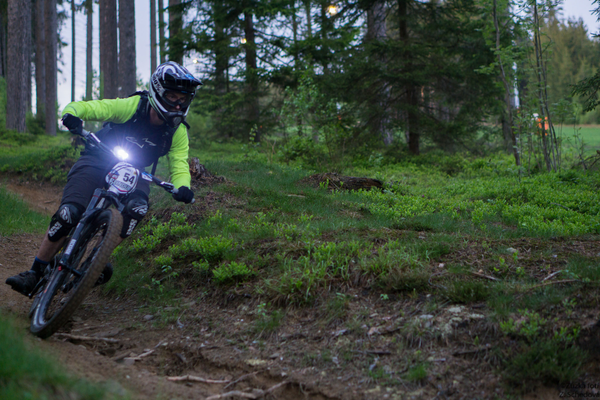 Když po dojezdu na vrchol kopce přijíždím k frontě čítající odhadem 60 jezdců, je mi jasné, že to za světla už rozhodně nedopadne. Během půlhodinového čekání na startu se snažím alespoň nějak orientačně nastavit úhel svých světel. Šance, že to netrefím od oka úplně dobře jsou dost vysoko, což se potvrzuje již v prvních metrech po mém odpípnutí do poslední RZ toho dne.