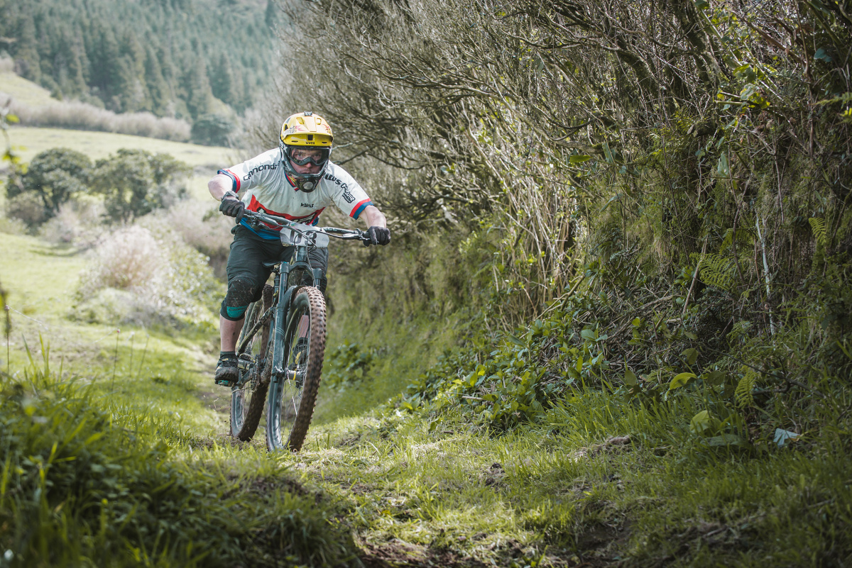 Rozvrh víkendu je jednoduchý. Carlos na Azorech plánuje velké věci, a proto se jede ve stylu EWS – dva dny trénink / dva dny závod. Shuttly? Zakázáno! Ani po silnici? Ne, zakázáno! Kdo poruší, nestartuje. Ještě jednou moje otázka na něj.
