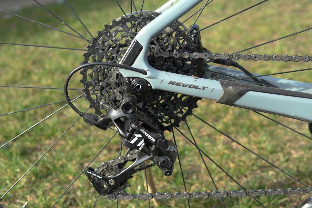 Vyšší model Revolt Advanced 0, ale i levnější Revolt Advanced 2 vsází na tradiční „silničářské“ řazení Shimano v sestavě 2×11. U vyššího modelu v podobě rodiny Ultegra, u nižšího na úrovni sady Shimano 105. V principu není toto rozvržení špatné, každopádně já osobně jsem velice rád za skutečnost, že byl za tesťáka vybrán právě Šediváček Advanced 1 se SRAMem.