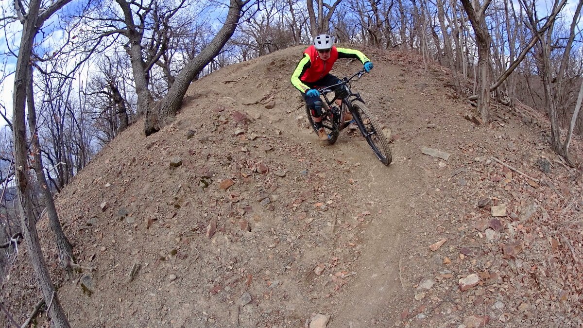 Stačí se na vrcholku trochu zklidnit, ustálit vysokou tepovku z výjezdu, urovnat chrániče, utáhnout popruhy batohu a už to lítá! Jasně, Spicy má hodně stabilní řízení, ale jakmile se rozjedete z kopce dolů, přestanete to řešit. Tu a tam si člověk na volnější vidlici vzpomene, když svůj stroj musí někde rychle zlomit, obecně má ale pocit, že mu tento rys obvykle spíše pomáhá, než by jej omezoval.