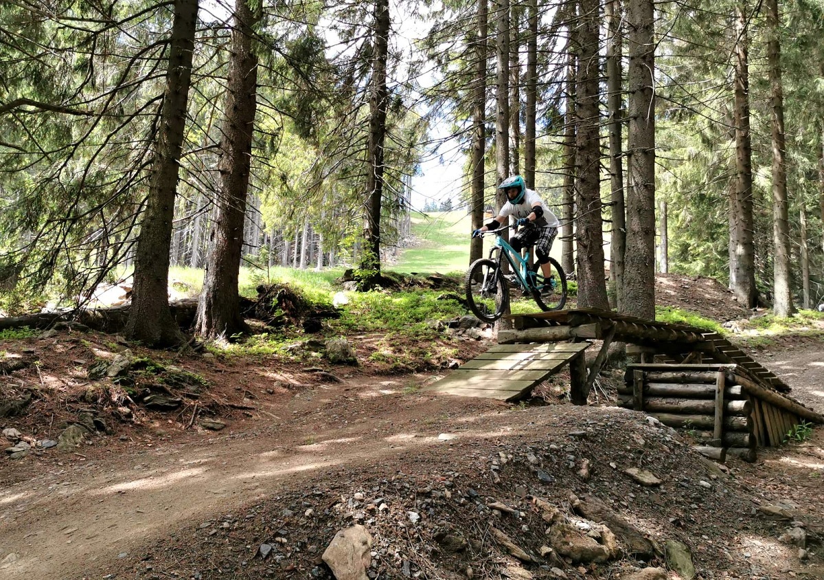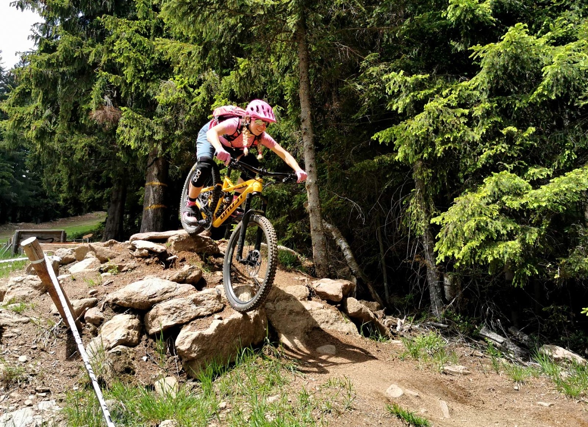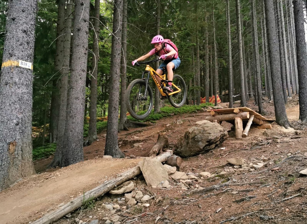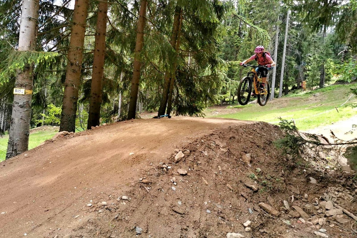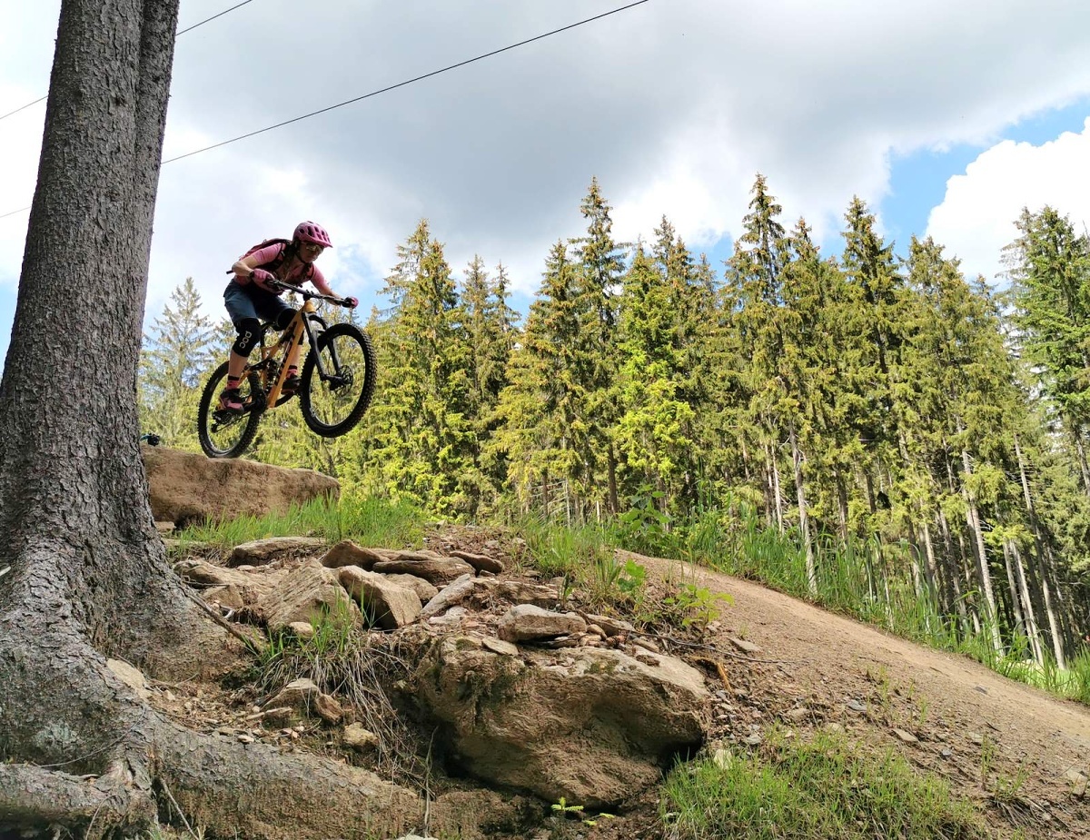 Na Špičáku jsme sice jezdili dva dny, klidně bych tu ale mohla jezdit celý týden a pořád budu mít co pilovat. To je jedna z věcí, která se mi na špičáckém bikeparku líbí – množství překážek, které stále nemám odšrktnuté, takže mám o to větší motivaci se sem vracet a posouvat svoje možnosti. Příště si dávám za úkol drop na začátku Strugglu a také jsem si ještě nestihla vyzkoušet skok do duchny, do níž to můžete poslat z dvou různých odpalů hned vedle lanovky. Bez příplatku, podotýkám.