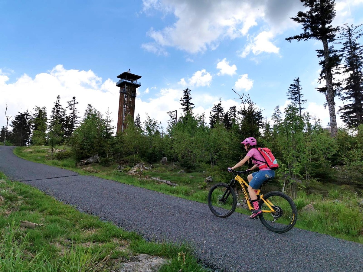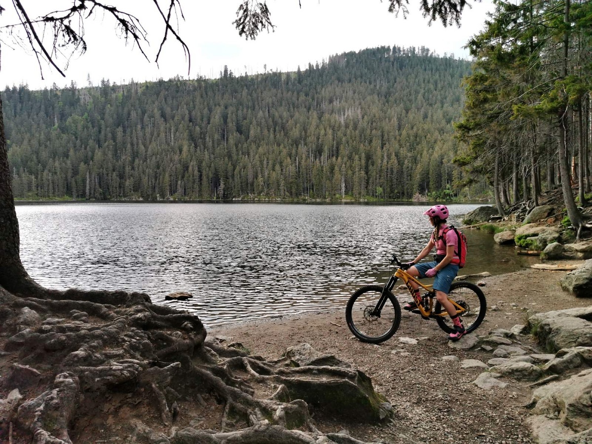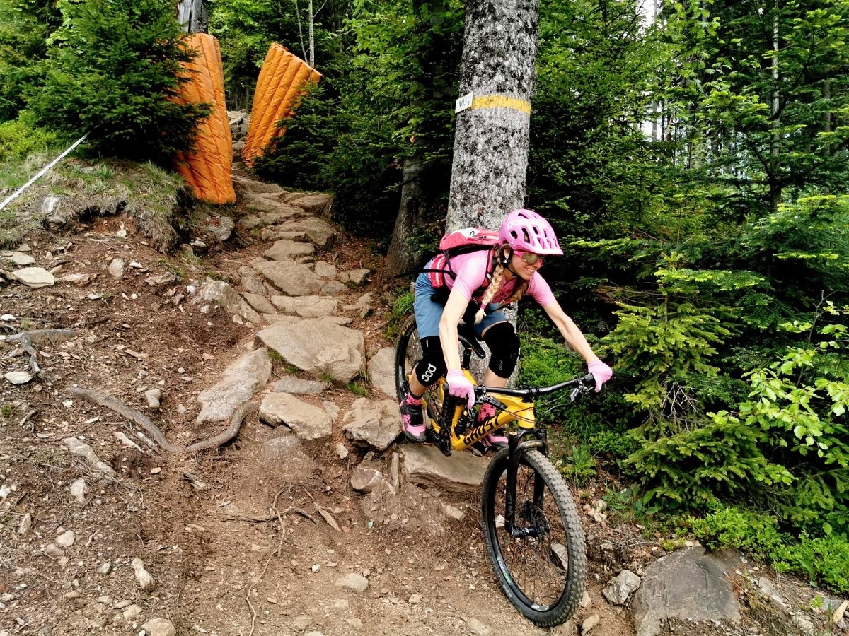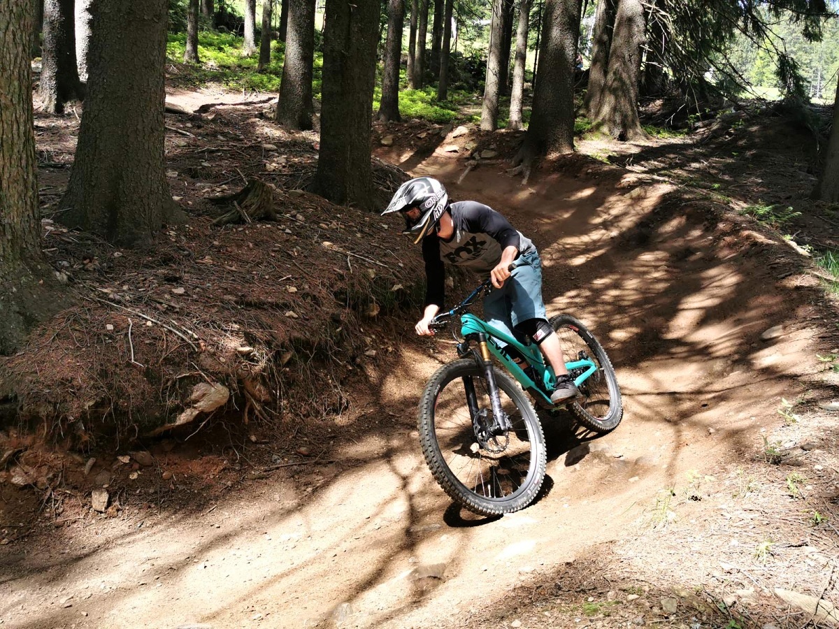 Až letos poprvé jsem se projela na černé trati Struggle, kterou jsem automaticky míjela, ještě když jsem na Špičáku jezdila na XC kole. Se zdvihy 170 mm jsem si ale už řekla, že by mě snad nemuselo nic vylekat a byla jsem nakonec příjemně překvapená – vše bylo jetelné, předvídatelné a nečekala tam žádná nenadálá zrada, kvůli které bych musela seskakovat z kola.