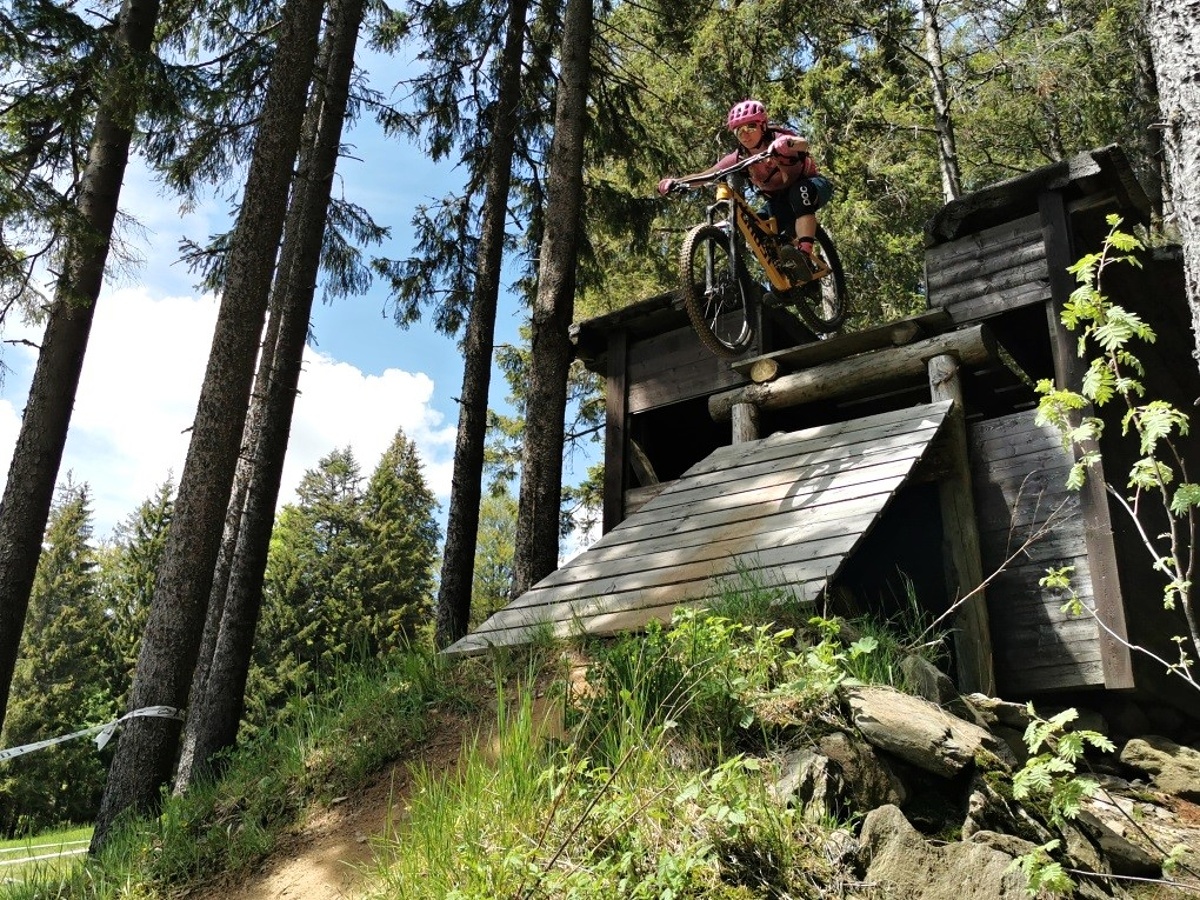 Co jsem si tentokrát konečně odškrtnout mohla, byl seskok z boudy na trati Lucky Bastard. Dříve pro mě byla nepříjemná díra mezi boudou a dopadem, která už je ale nějaký čas vyplněná dřevem, takže se to tam s trochou potáhnutí poslat dá. Jedničku za provedení bych si ale nedala, proto i přes úspěšné zdolání řadím tento skok k těm techničtějším na Špičáku.