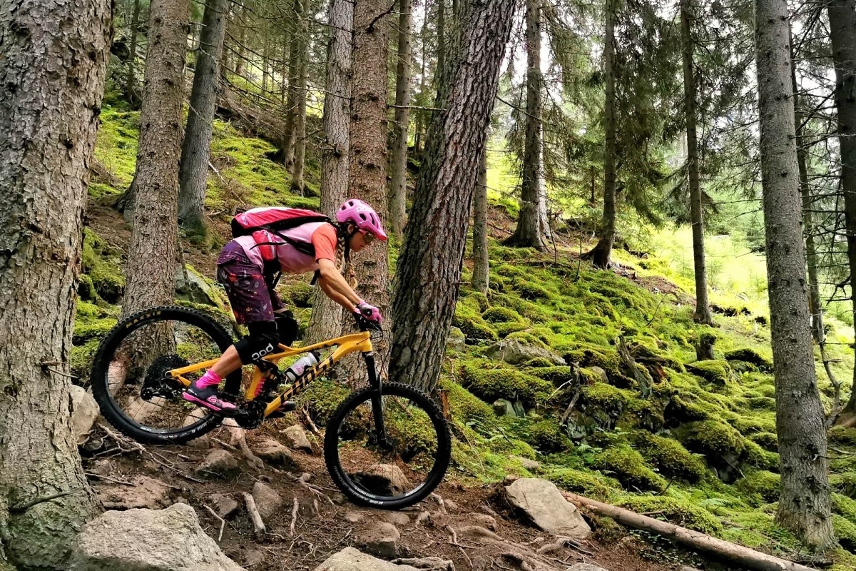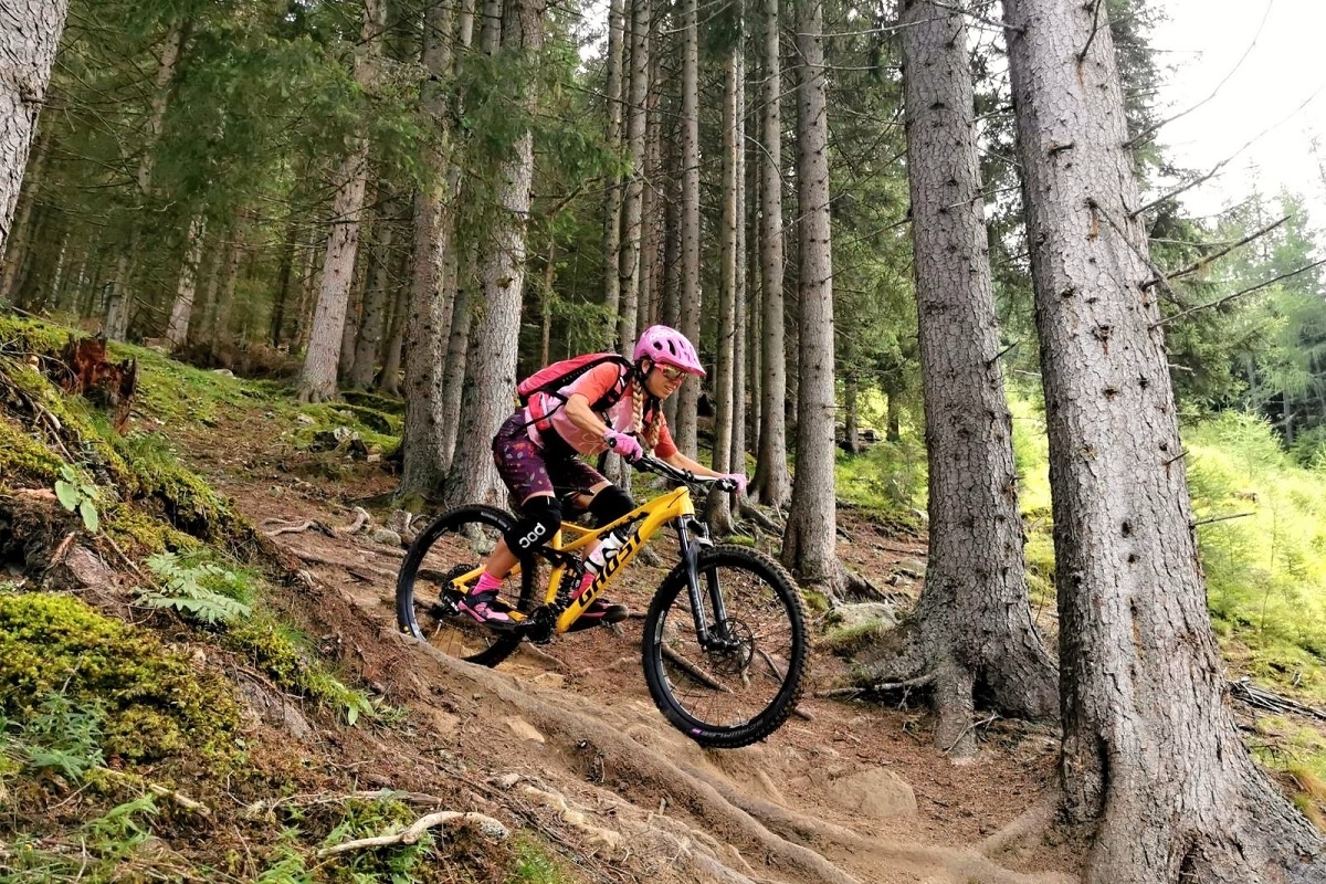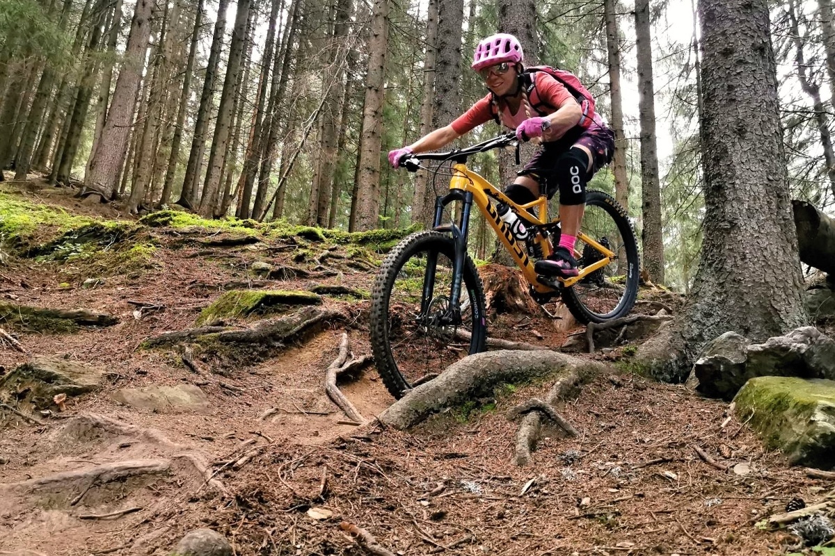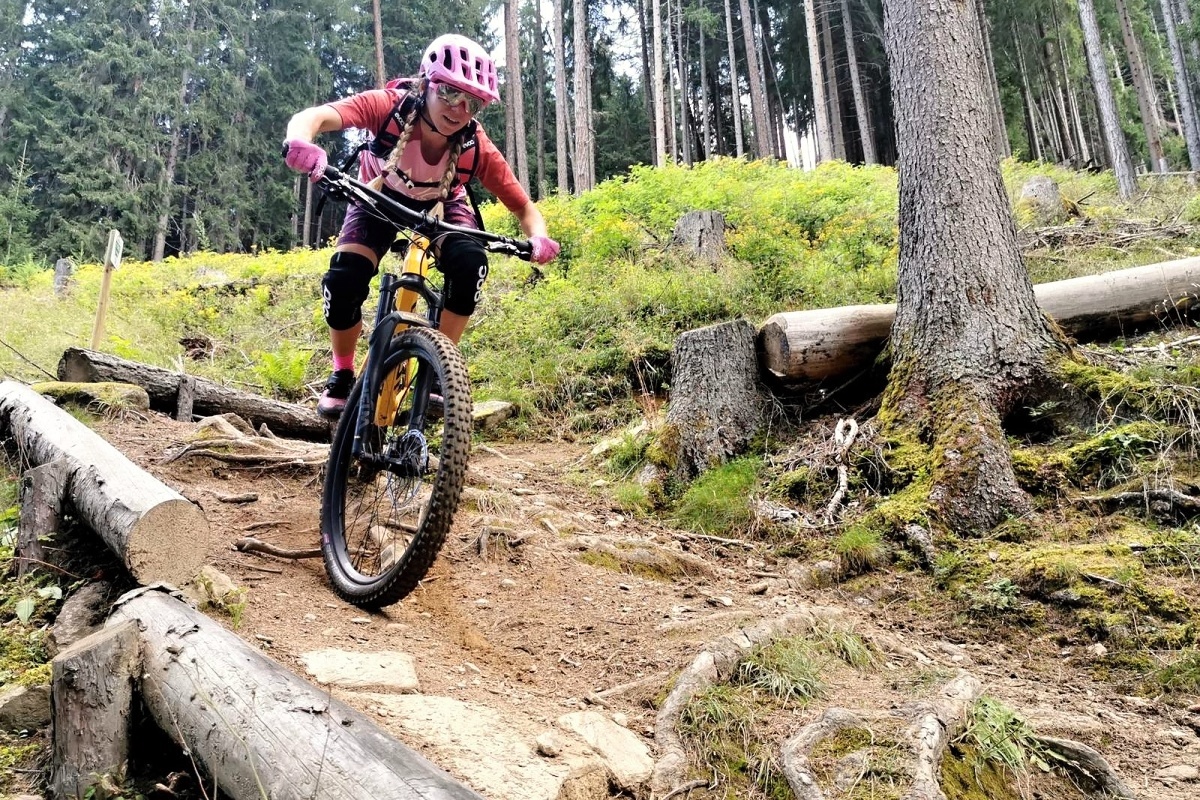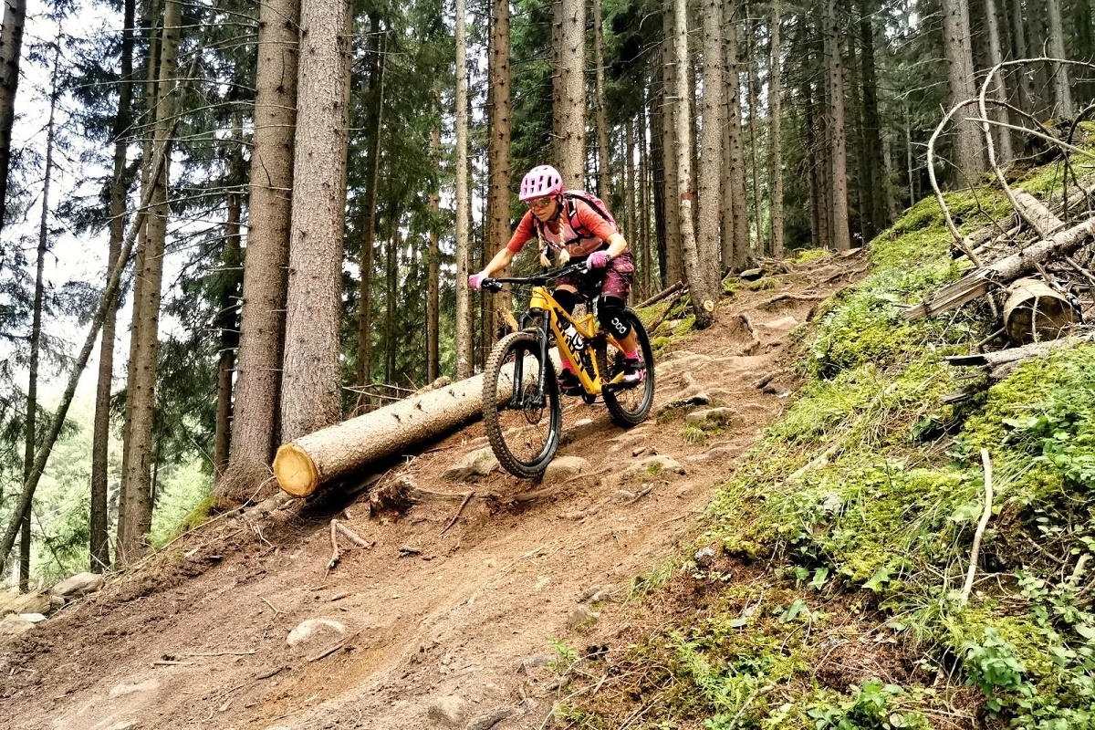 Už jeho začátek vás nenechá na pochybách, že se tu nepojede žádné bezhlavé flow, ale že rozhodně potřeba dívat se před přední kolo. Už v první zatáčce po startu mám co dělat, abych stihla zatočit, než vyletím z úzkého technického trailu! 😨