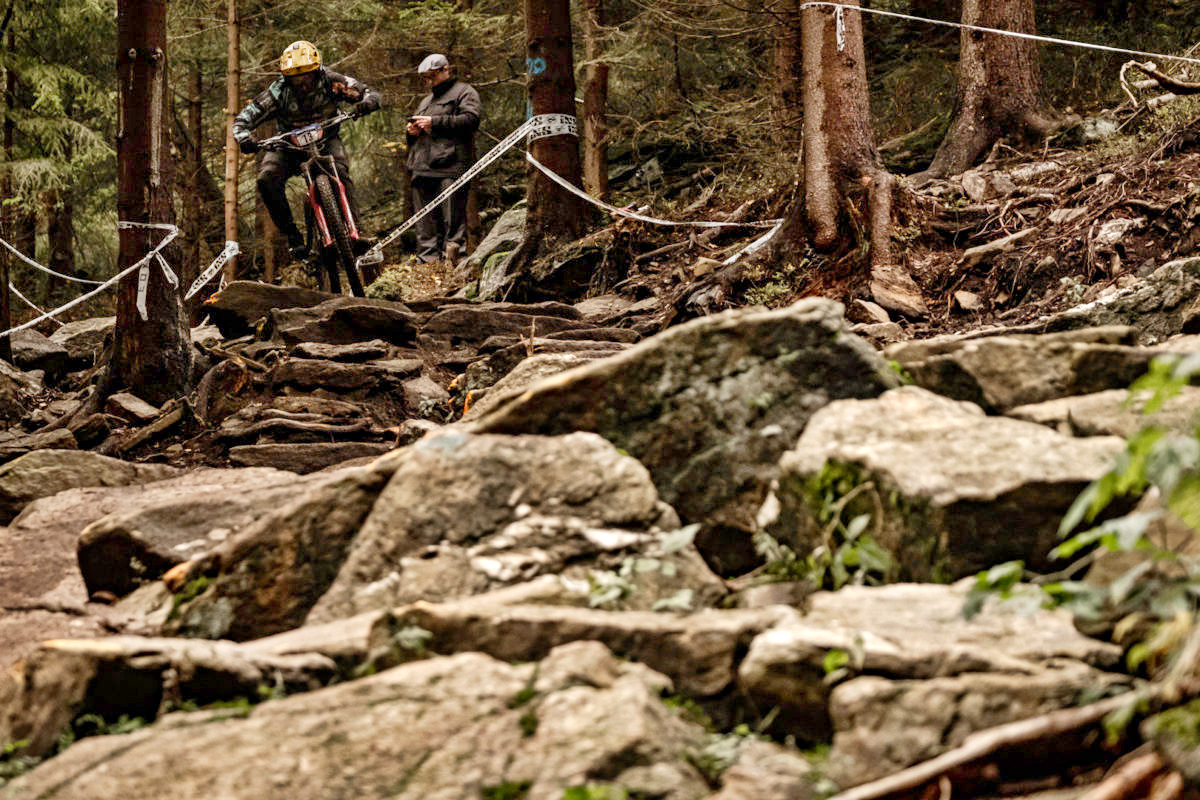 Moc se netěším na dvojku, která byla opravdu pecková, ale byl jsem z ní trošku nervózní. Bylo těžké v ní jet bez chyby. Prudká stráň a samé switchbacky, za mě taková „francouzská stage“. Hlavně na těch kořenech, který před námi všichni ojezdili, to byl masakr. Víc jak 70 % času jedu s nohou venku, koloběžkuju a zároveň volím ty nejkrajnější stopy. Podařilo se až na jednu chybu před cílem! Nakonec jsem tuhle stage zvládl dobře i díky skvělým divákům, kteří nelenili a fandili o 106!