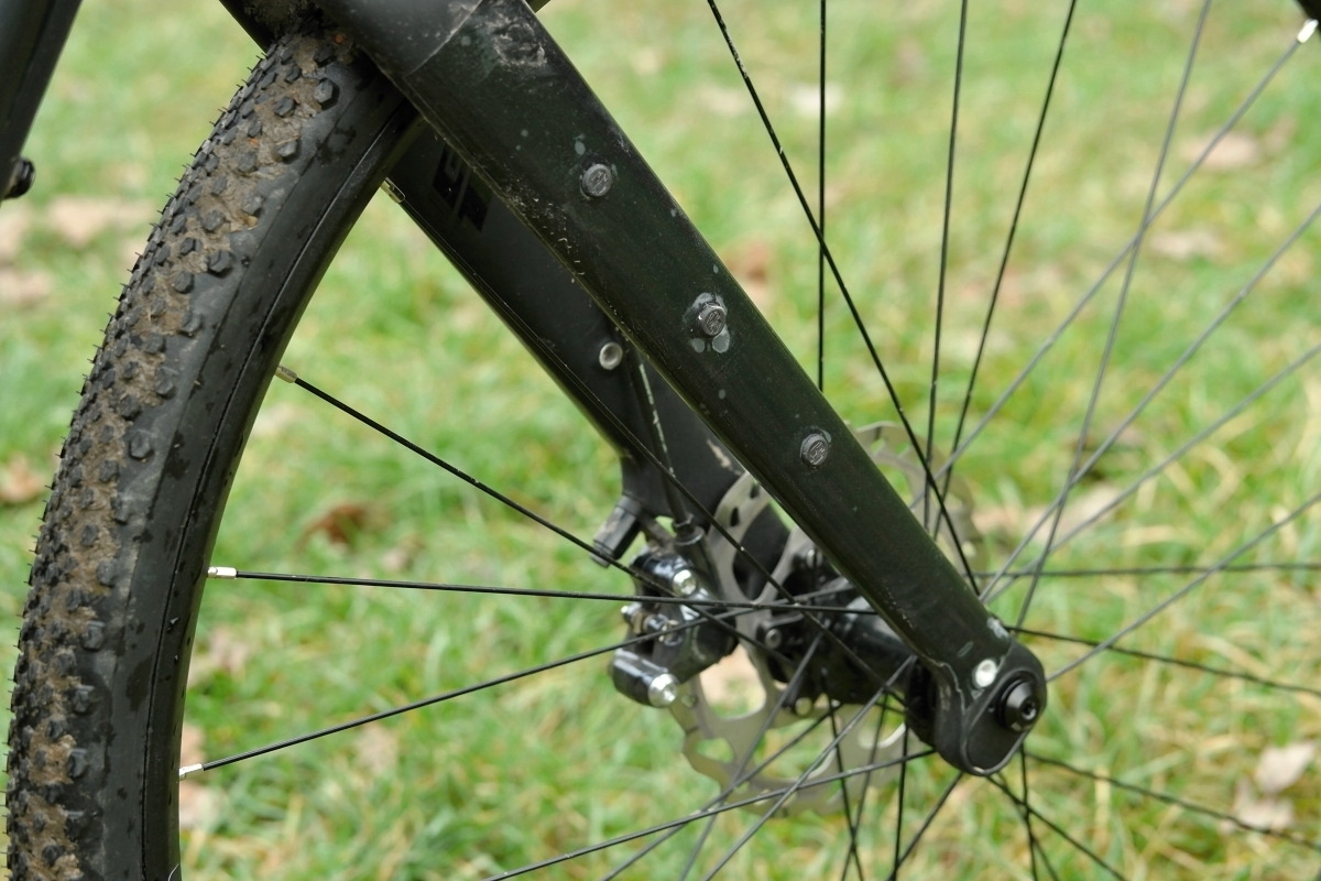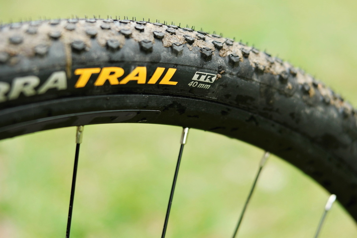 Pro zajímavost rozdíl v celkové hmotnosti byl 9,03 kg (Continental Terra Trail 700x40c, bezduše + 1x Panzer) versus 8,9 kg s původním obutím WTB Riddler (700x37c) s bezduší vepředu a duší vzadu.
