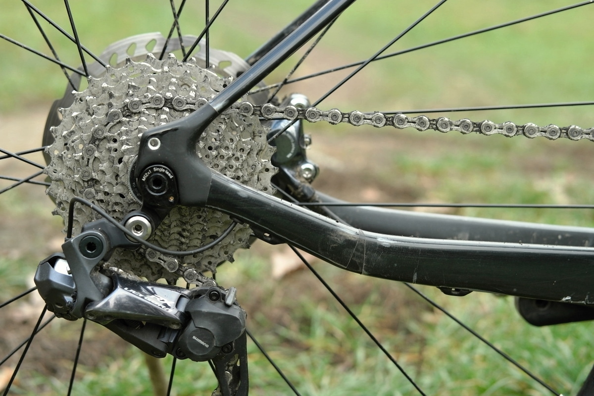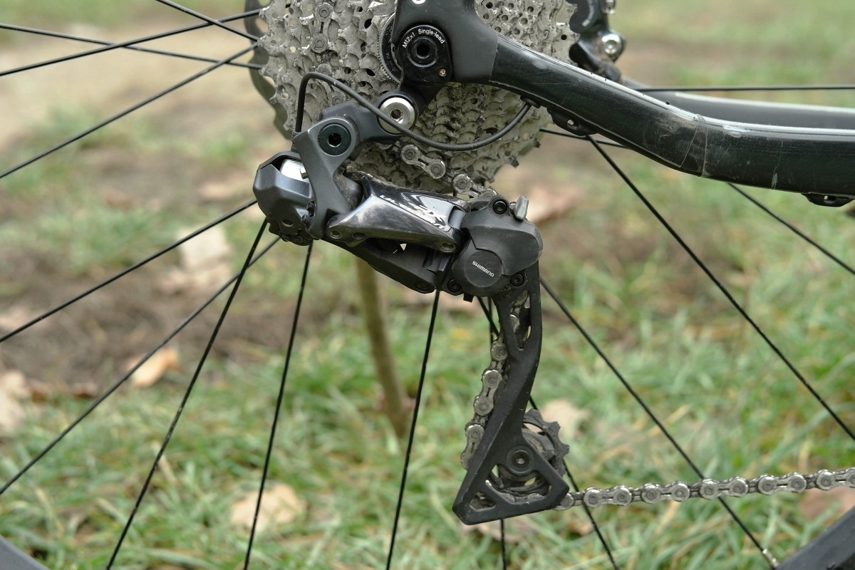 - Řazení Shimano Di2 je sice komfortní a spolehlivé, drobné ovládací spínače se ale příliš nehodí pro provoz v terénu. Zde bych asi více ocenil klasickou mechanickou verzi