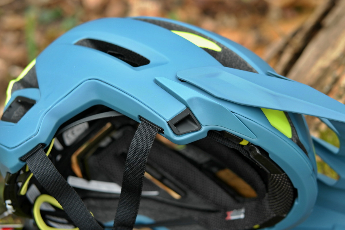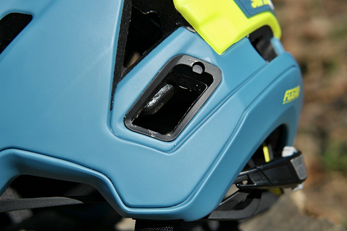 Stahovací čelenka systému Float Fit je v přední části spojená s čepičkou MIPS Spherical, vzadu je ale na ni de facto nezávislá. Navíc se pod středovým polstrováním skrývá možnost výškově posouvat zadní upínací část, a to ve čtyřech polohách. Technicky je tento prvek nastavení realizován v podobě čepů poměrně pevně zacvaknutých do pěnové skořepiny, u nichž se zřejmě neočekává častější manipulace – nastavit a nechat být!