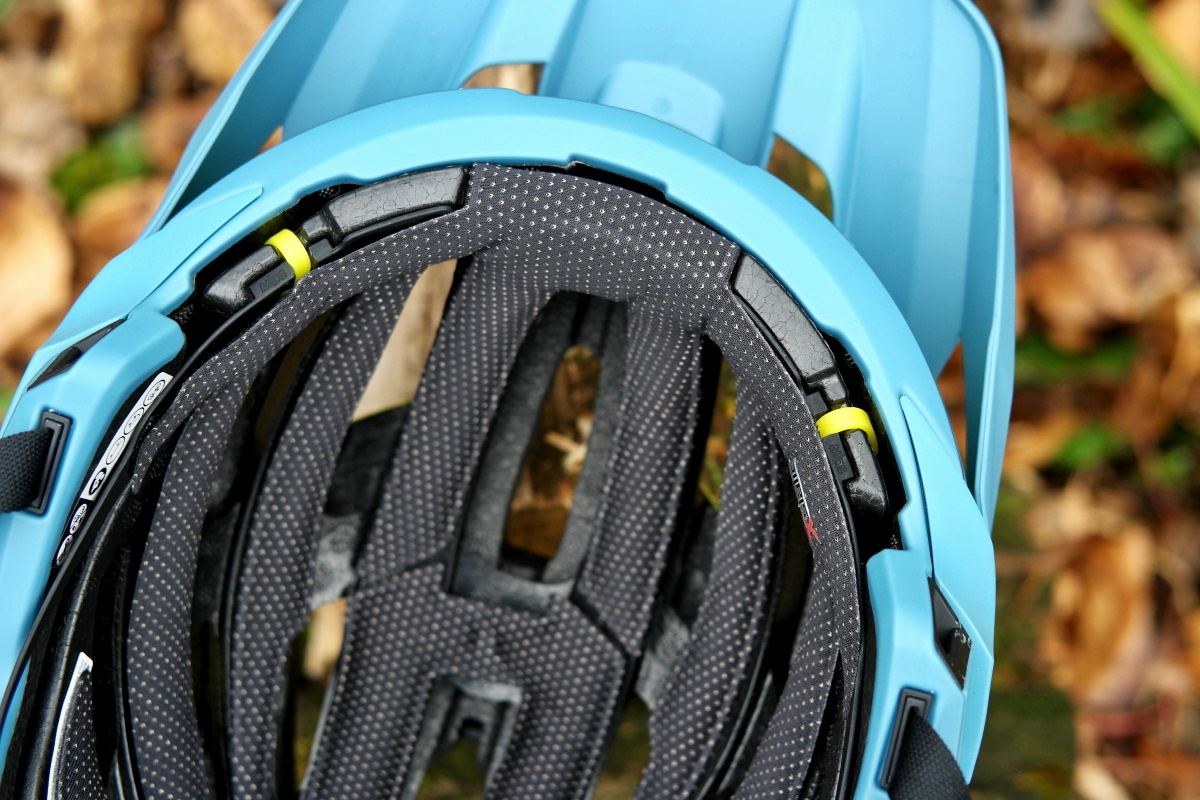 Zdržíme-li se ještě chvíli u vnitřní části, pak stojí za zmínku, že zde najdeme antibakteriální polstrování X-Static® rozprostřené na poměrně velké ploše, navíc s protažením tohoto polstrování v oblasti čela, tzv. Sweat Guide*. Zlepšovák, který odvádí pot tak, aby vám nekapal do očí a vnitřní upínací systém Float Fit.