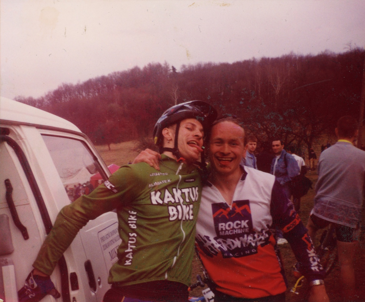 GASPI: Já si myslím, že jsme se potkali ještě v dobách komunismu, někde na bikrosu. Ale tehdy jsme jezdili každý v jiné kategorii, proto jsme se spíš míjeli. Nějaké první seriózní seznámení proběhlo zřejmě někdy při dual-slalomu, asi na Máchalce. Mně si tenkrát vybrali do teamu Česká Krev a někdy půl roku na to přišel Michal. Od roku 95/96 jsme tak jezdili za první profesionální český team – Česká Krev Cannondale. Manažera dělal Pavel Sedláček a mechanika Zdeněk Pól.