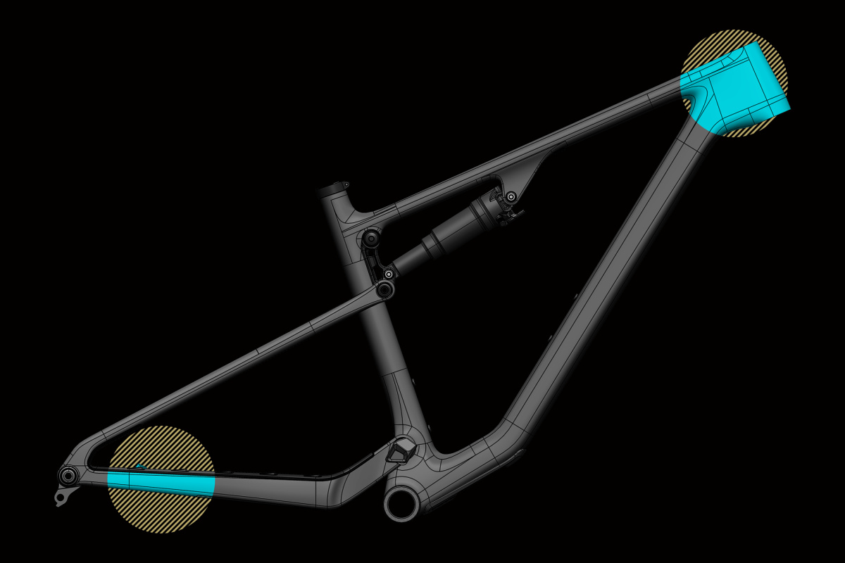 - Hodně se také laborovalo s vhodnou výškou středu tak, aby bylo možné plynule šlapat i při průjezdu „rock gardens“ a člověk nemlátil klikami neustále o překážky, zároveň, aby nebyl střed zase moc vysoko a nebylo negativně ovlivněno ovládání kola, jeho poslušnost a celkový balanc.