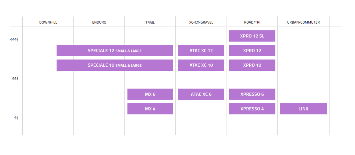 Nebo ve zkratce. Řada Speciale bude nabízet EN/DH verze Large a EN/TR varianty Small. Tradiční linka ATAC XC trochu zeštíhlí svou nabídku a přidá lákavé designy. Vzhled se obecně posouvá vpřed u většiny modelů. Všestranná verze MX se zredukuje na 2 modely a současná verze DH zmizí zcela.