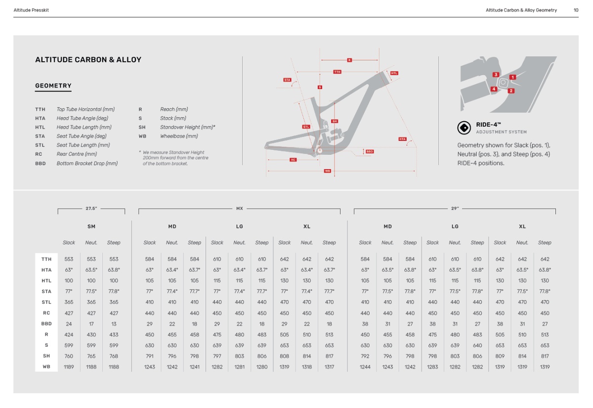 Ani nový Altitude rozhodně nezapomene na příznivce mullet koncepce (MX – 29“/27,5“), proto jeho zadní stavba obsahuje jeden, k tomuto účelu navržený Flip-chip, pomocí nějž bude snadné kolo přestavět právě na mullet, aniž by to mělo výrazný vliv na geometrii, nebo projev odpružení. Ostatně koukněte, jak vypadají čísla geometrie pro 29“ nebo v MX.